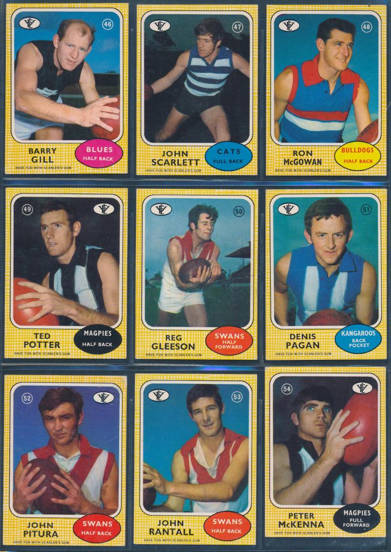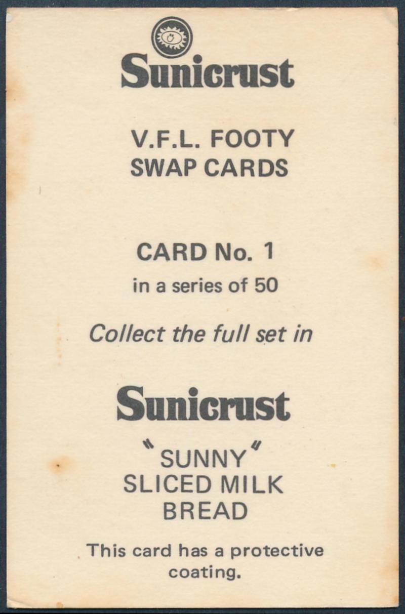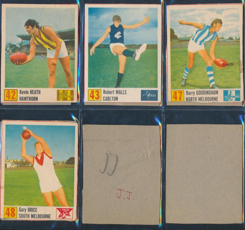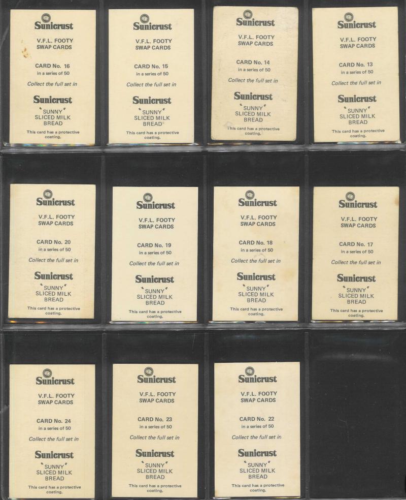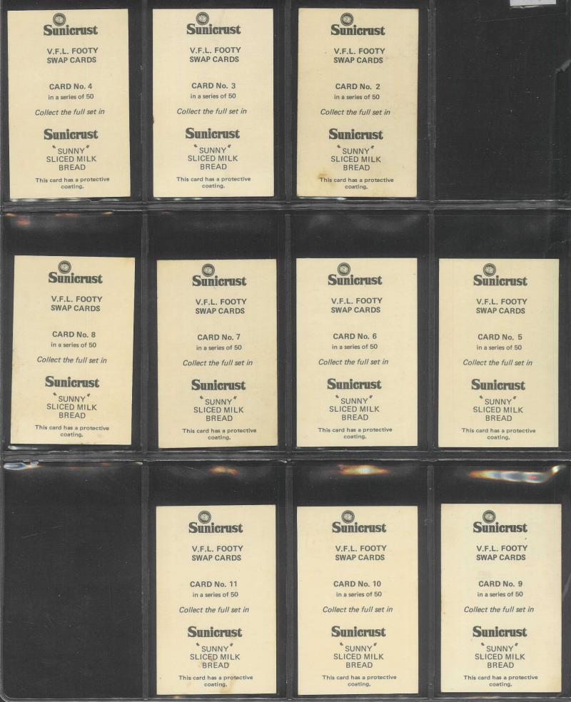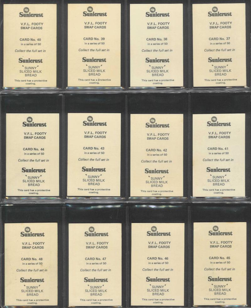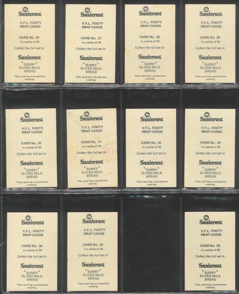 1971 Sunicrust Bread 'VFL Footy Swap Cards', almost complete set [47/50], mainly Fine/Very Fine.