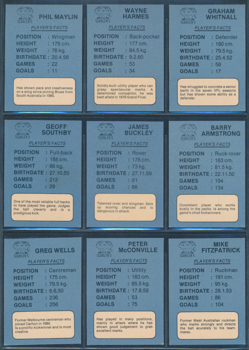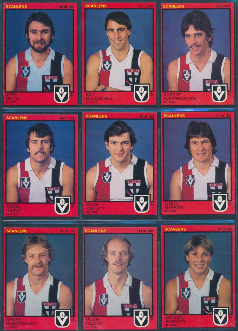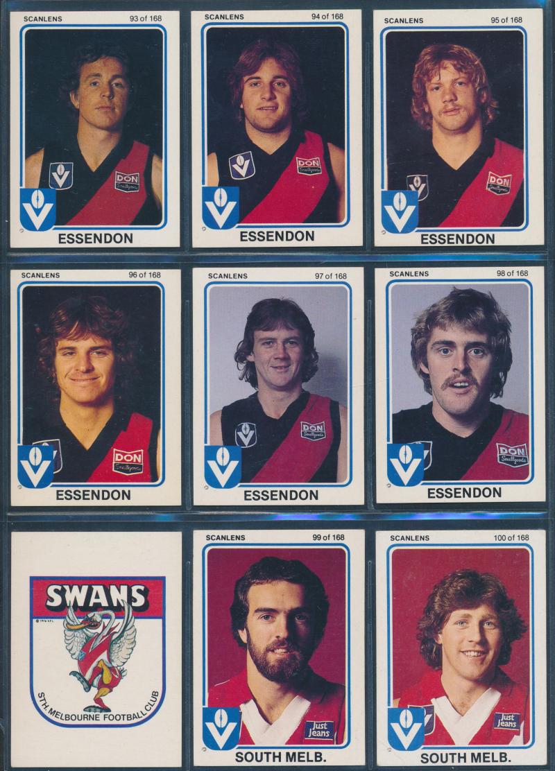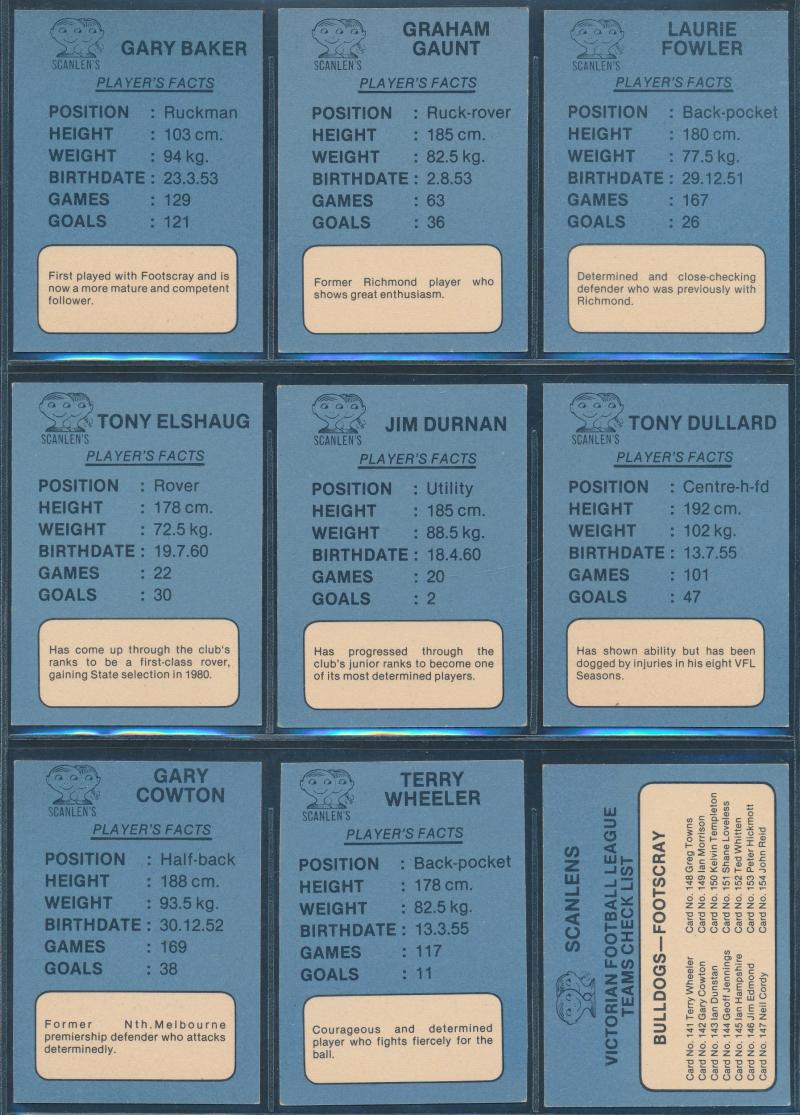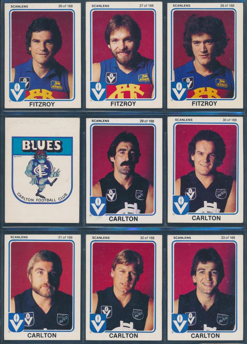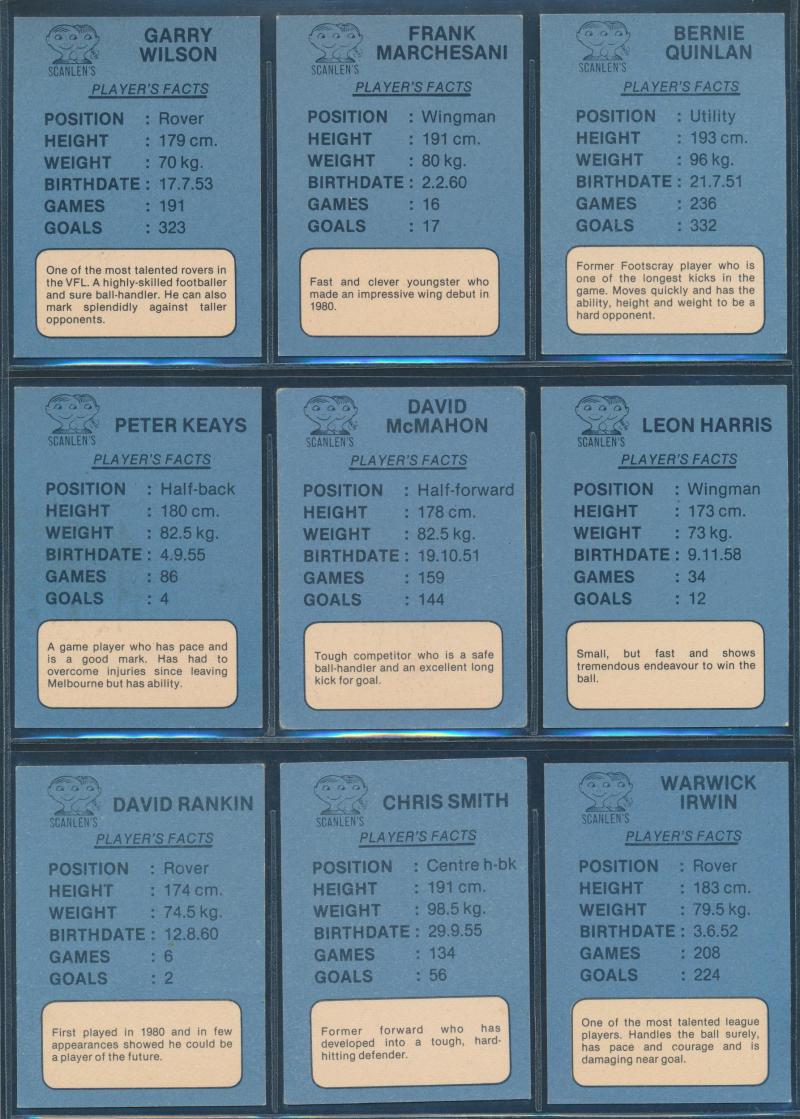 1981-82 Ardmona 'Big League Series 1' for Essendon (4), Melbourne (1) & North Melb (3); 'Big League Series 2' for Collingwood (18),