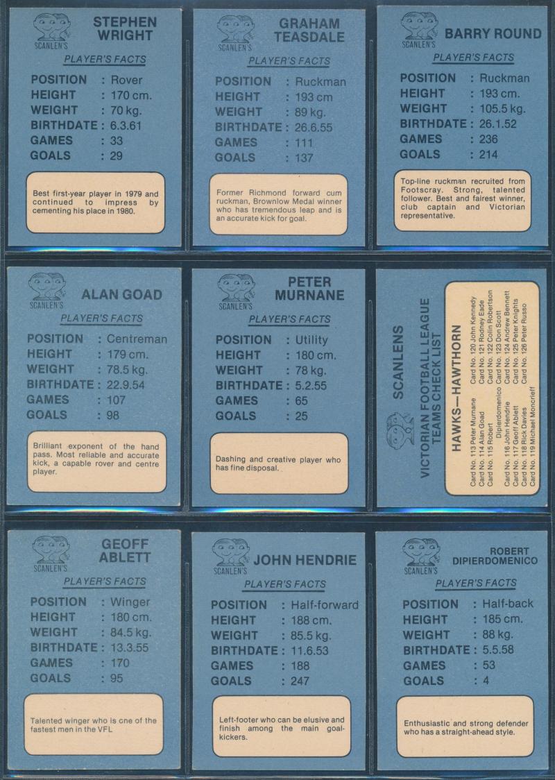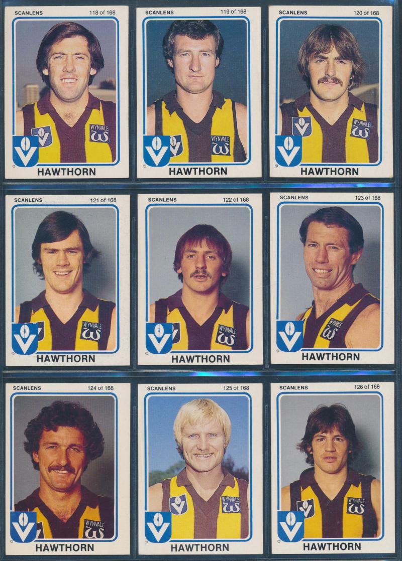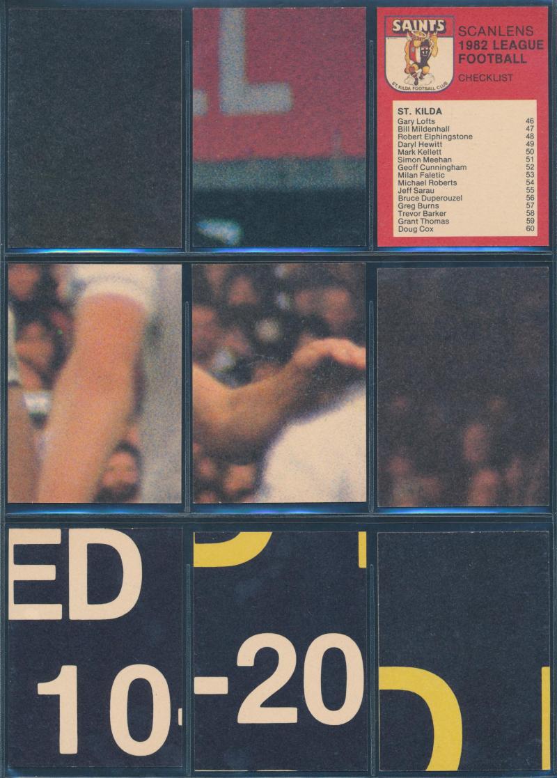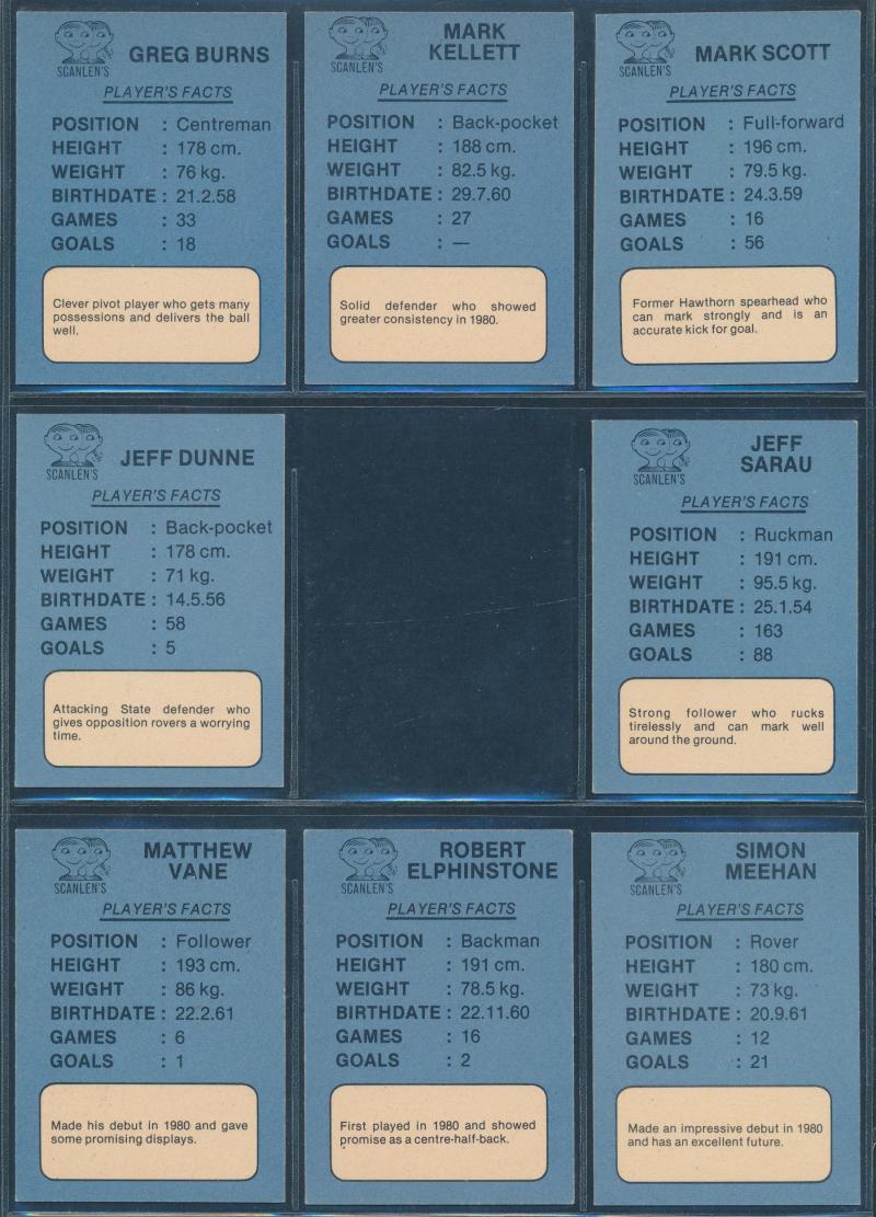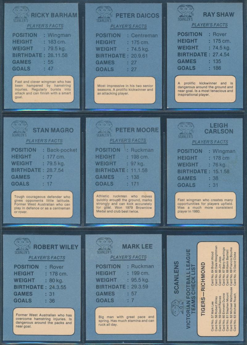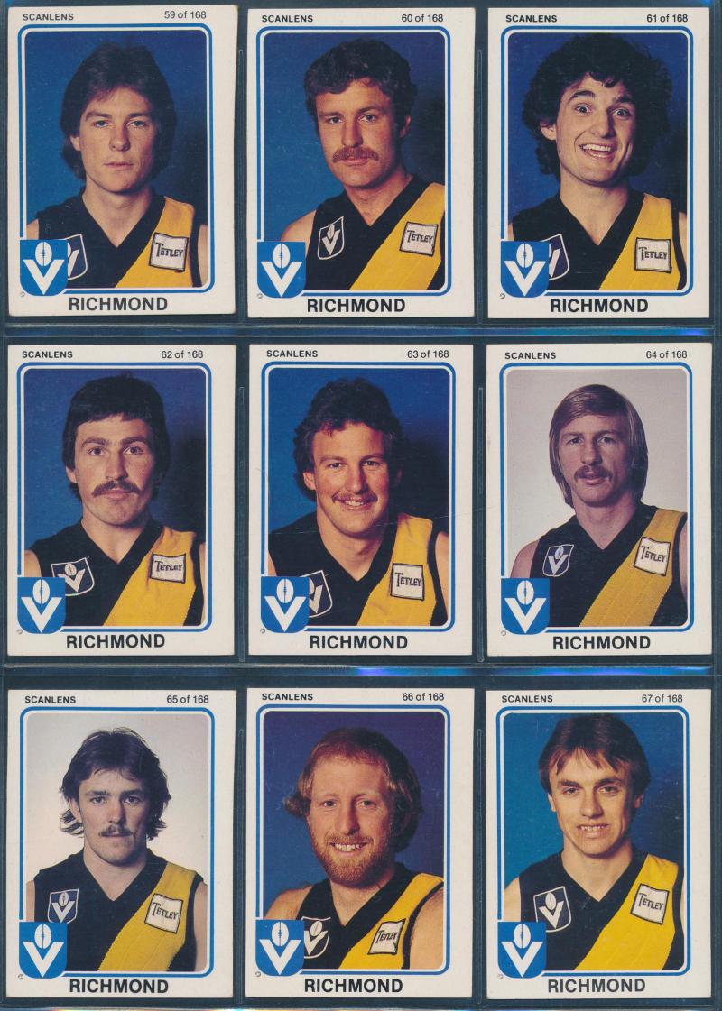 1981-82 Ardmona 'Big League Series 1' for Essendon (4), Melbourne (1) & North Melb (3); 'Big League Series 2' for Collingwood (18),