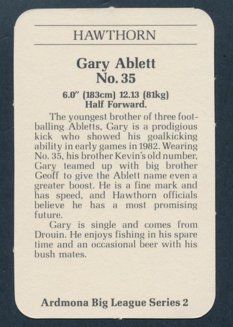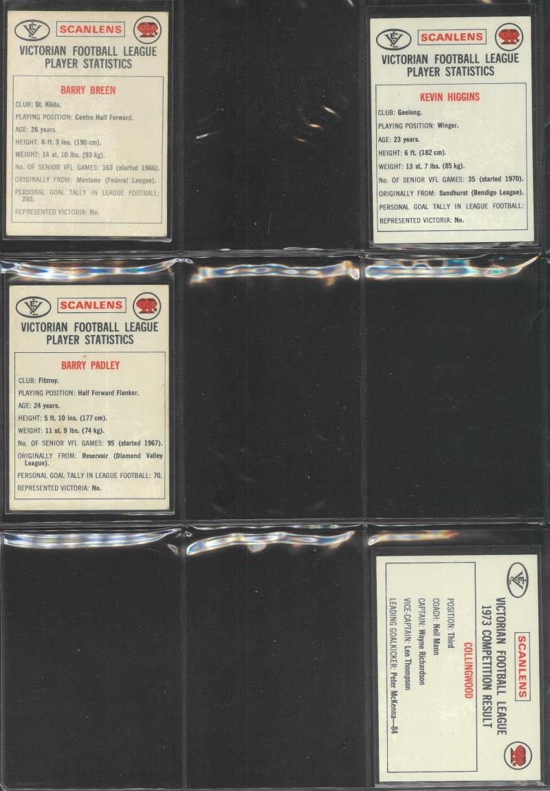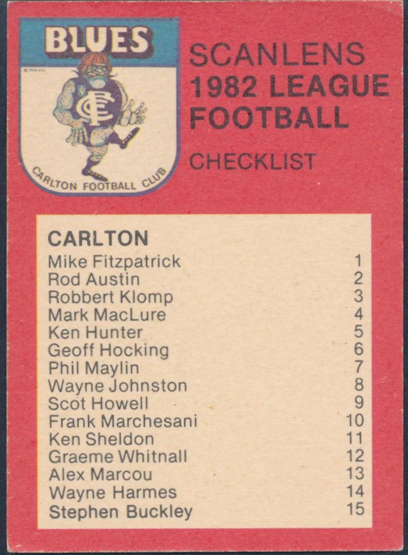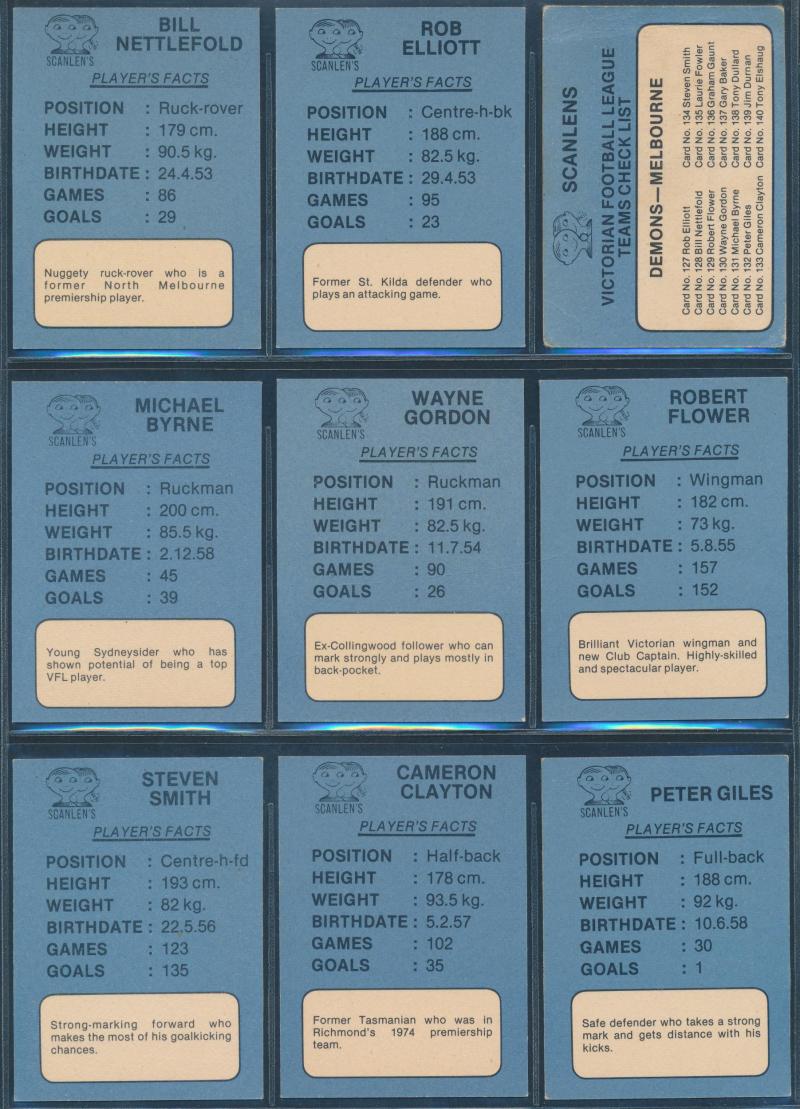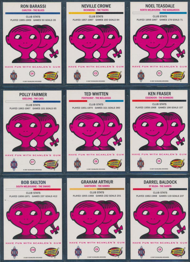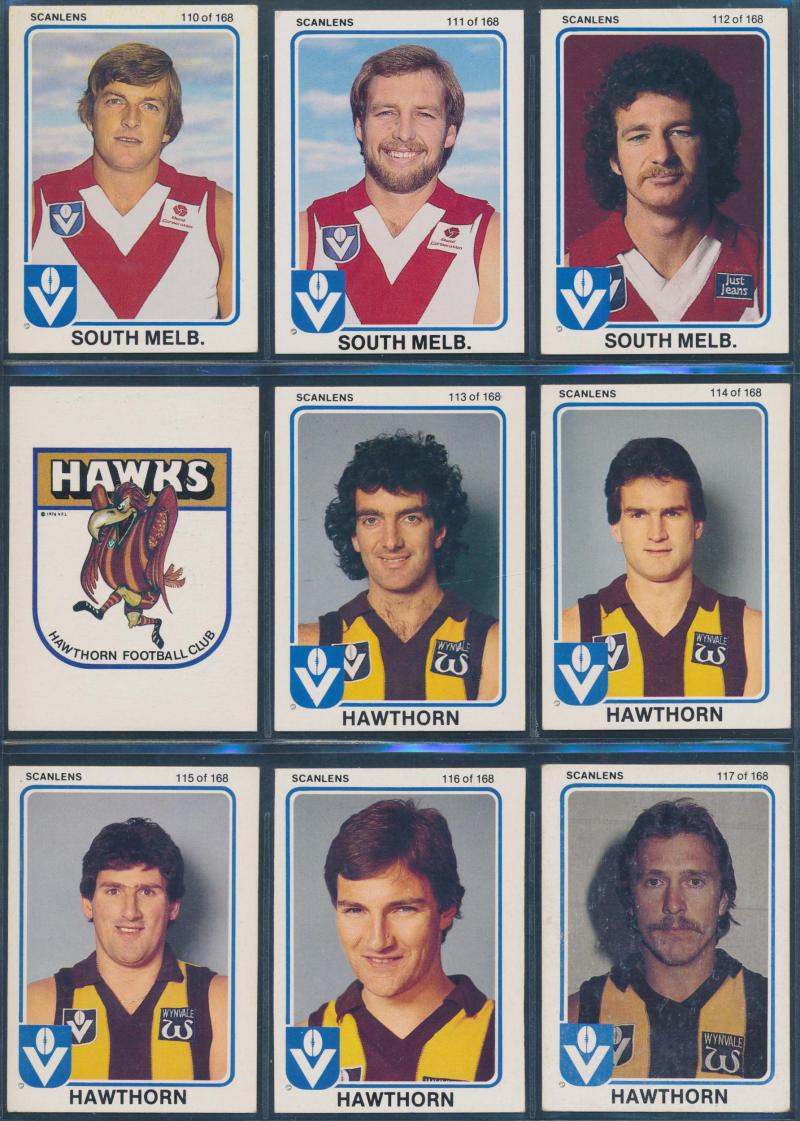 1981-82 Ardmona 'Big League Series 1' for Essendon (4), Melbourne (1) & North Melb (3); 'Big League Series 2' for Collingwood (18),