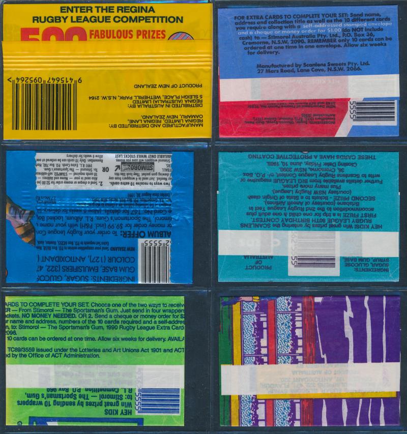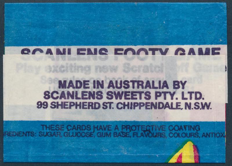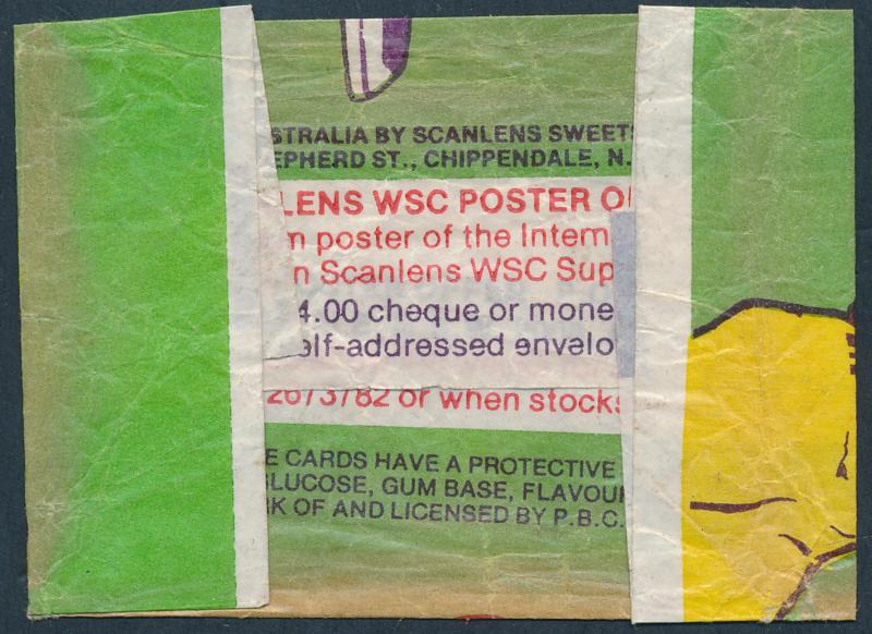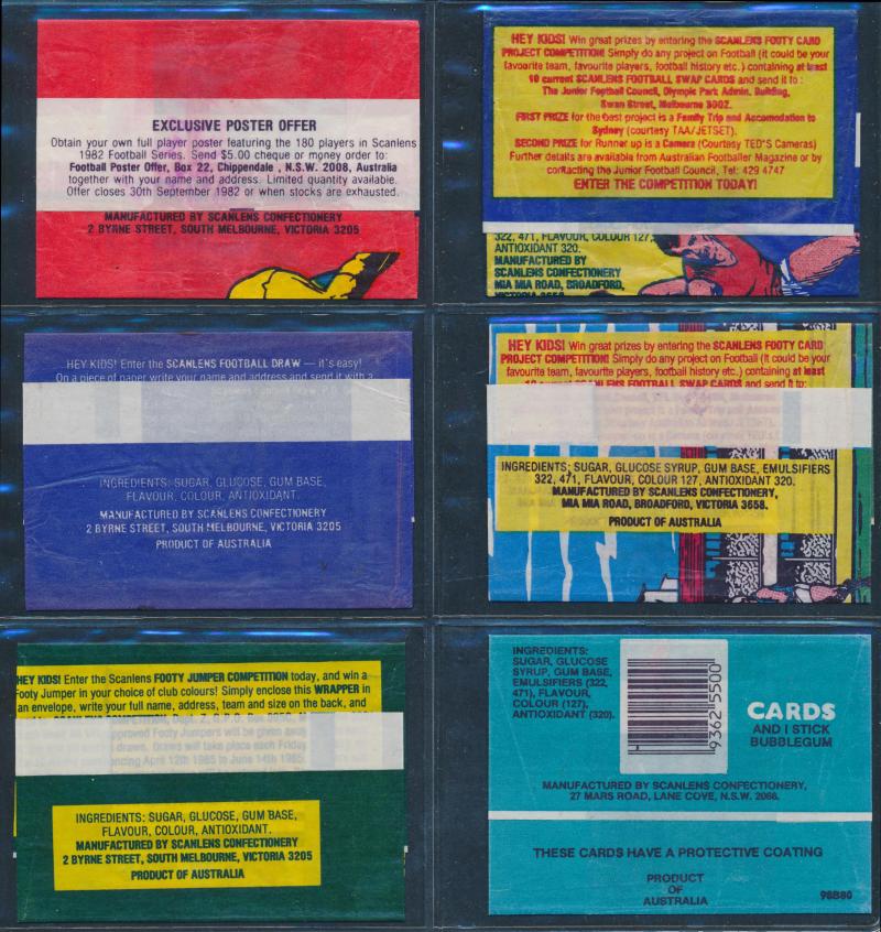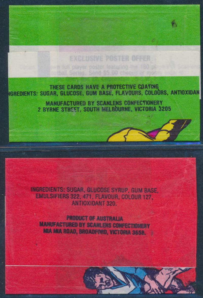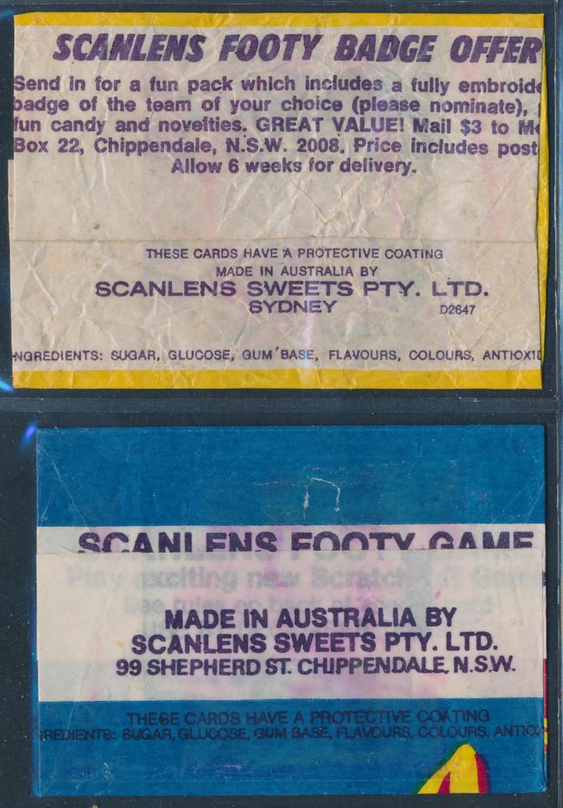 Scanlens wrappers for 1976, 1980, 1981, 1982, 1984, 1985, 1986, 1987 & 1988, mainly Fine/Very Fine.