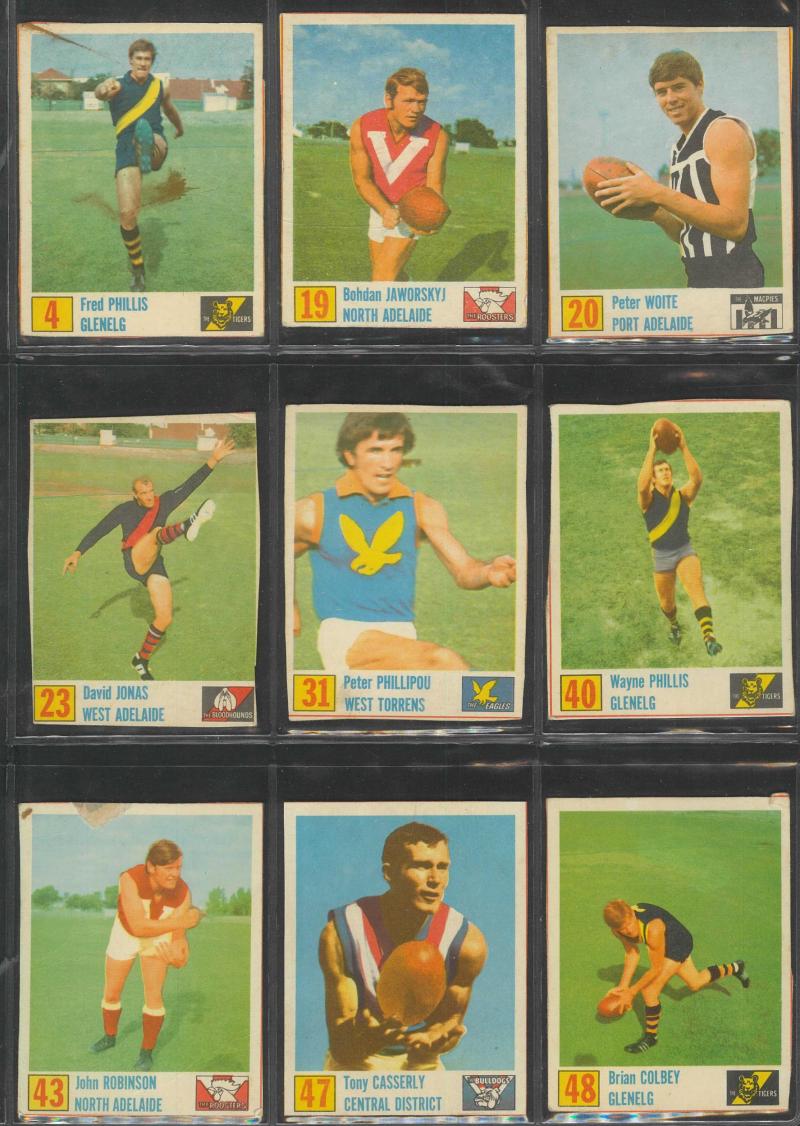 1971 Kelloggs 'SANFL Footy Festival' [9/48] & 'VFL Footy Festival' [31/48], mainly Fair/Fine.