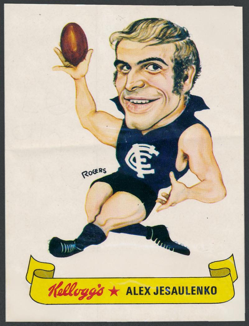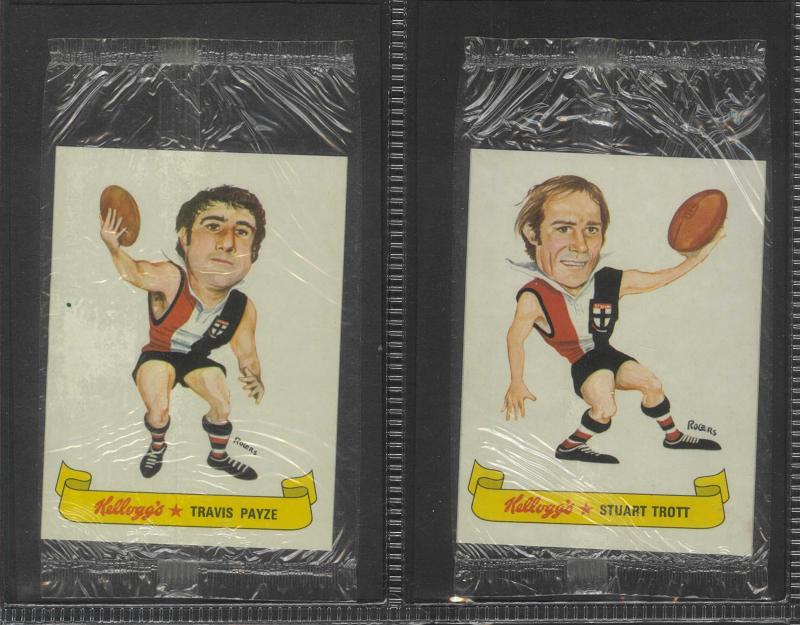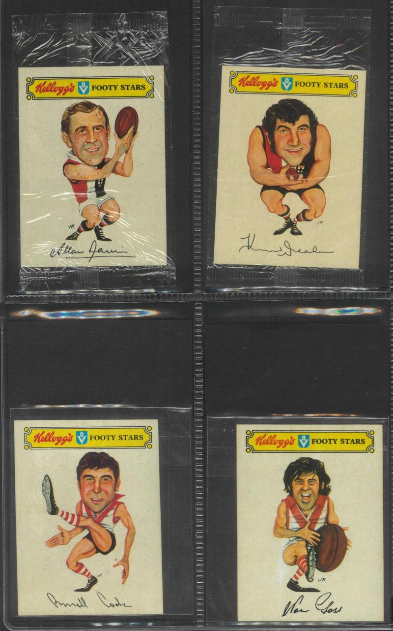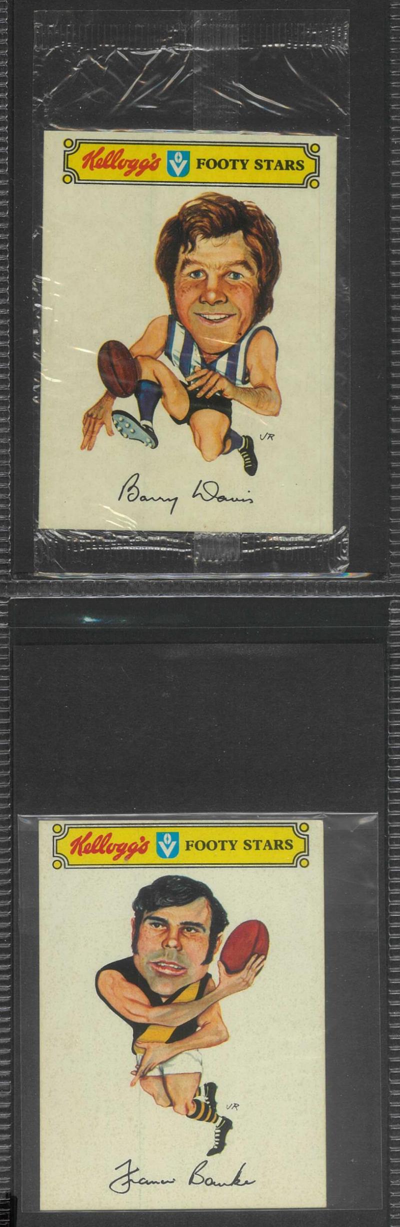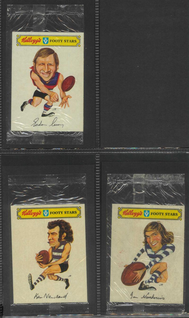 1974 Kelloggs 'Australian Football Caricatures - Footy Stars', almost complete set [22/24], all in cellophane wrappers, mainly