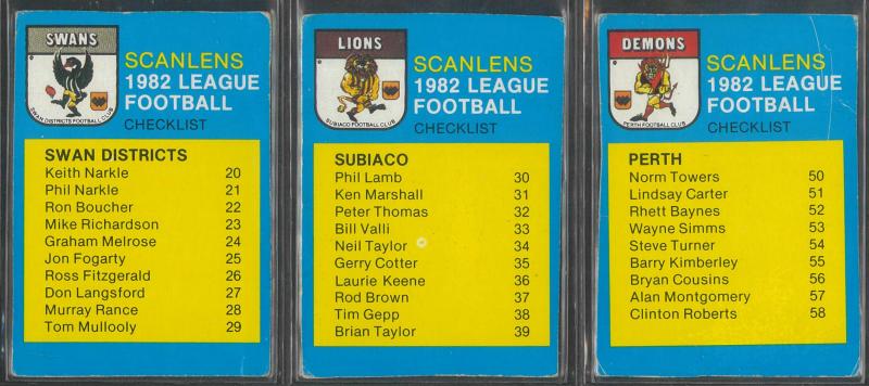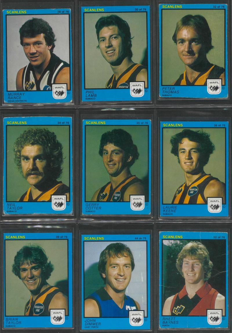 1982 Scanlens 'WAFL Footballers', part set [44/76] plus Checklists [4/8], mainly Fine/Very Fine.