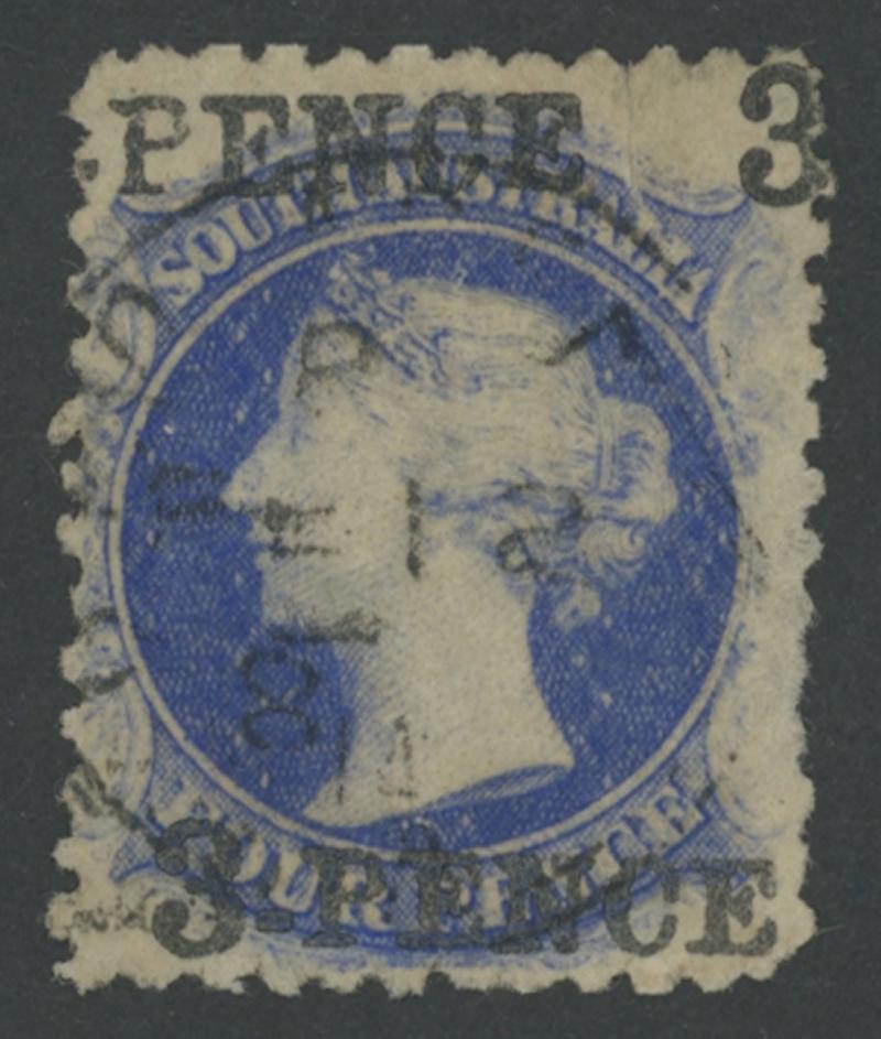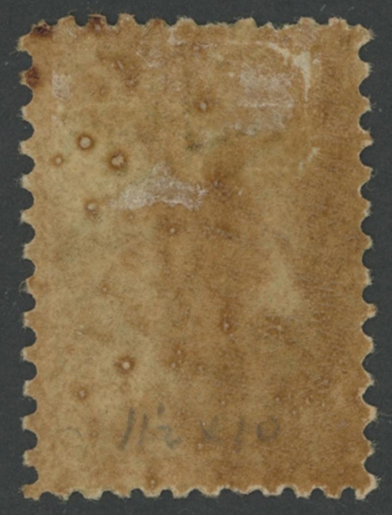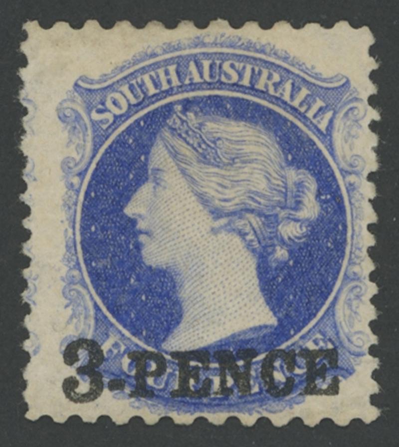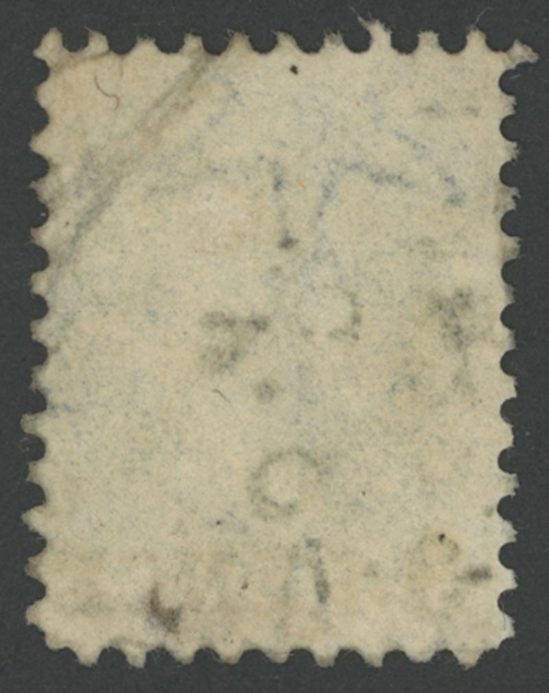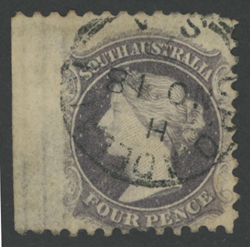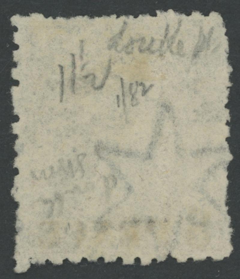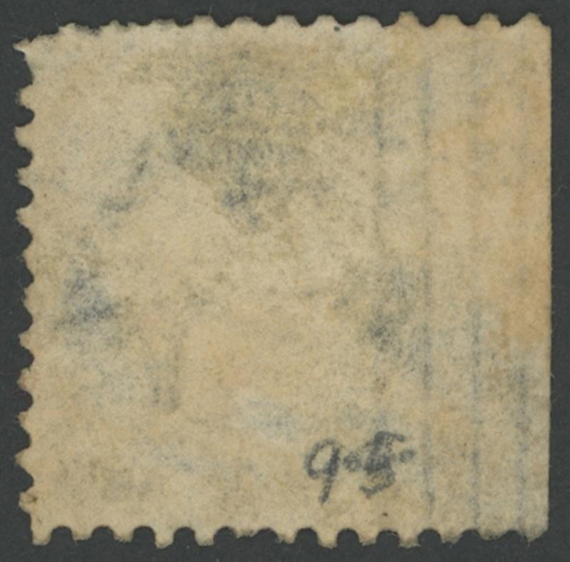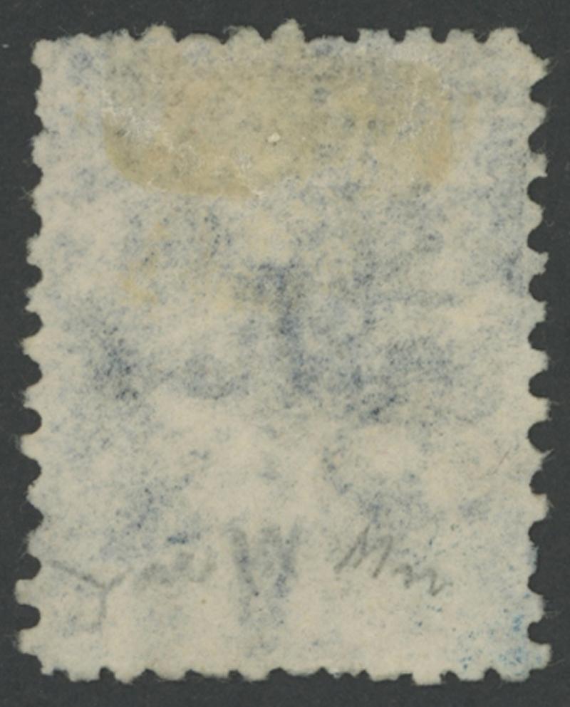 partial 'POSTA[GE]...' inscription at upper-left, slightly deckled edges, light horizontal fold. This paper was also used for Queensland's 1860-61 issue, and for stamps of numerous other British Colonies including Queensland, Tasmania and Victoria.