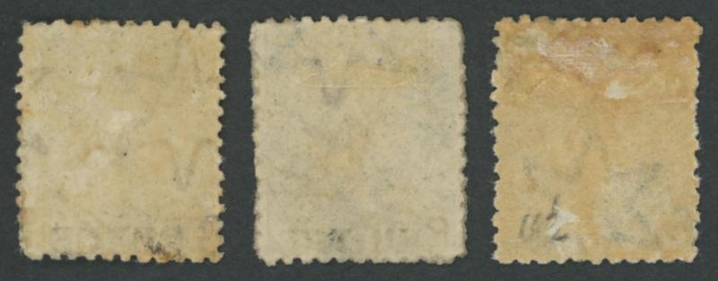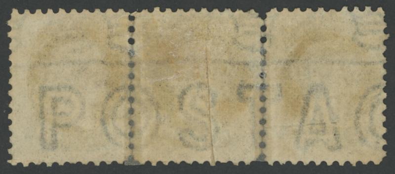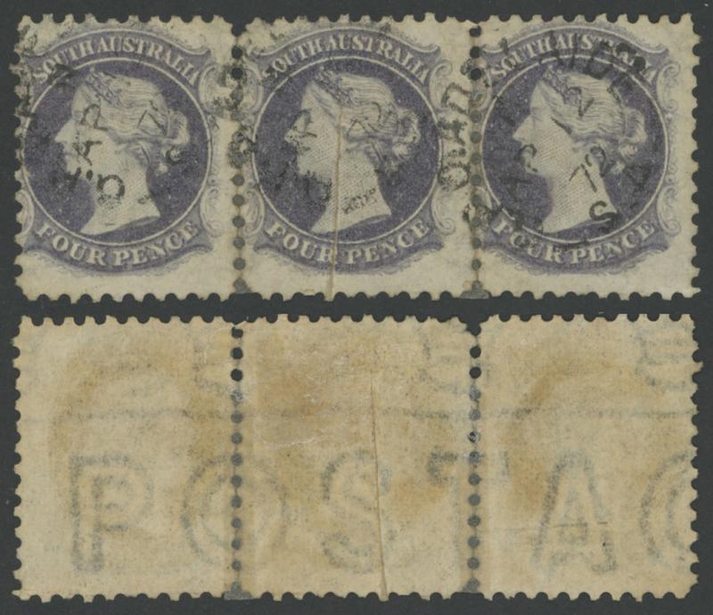 1871 QV Perkins Bacon V/Crown Watermark Paper Acquired from Victoria 4d dull lilac SG 111 horizontal strip of 3 with Reversed