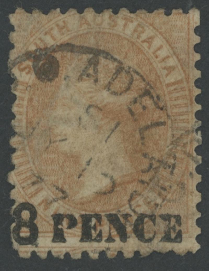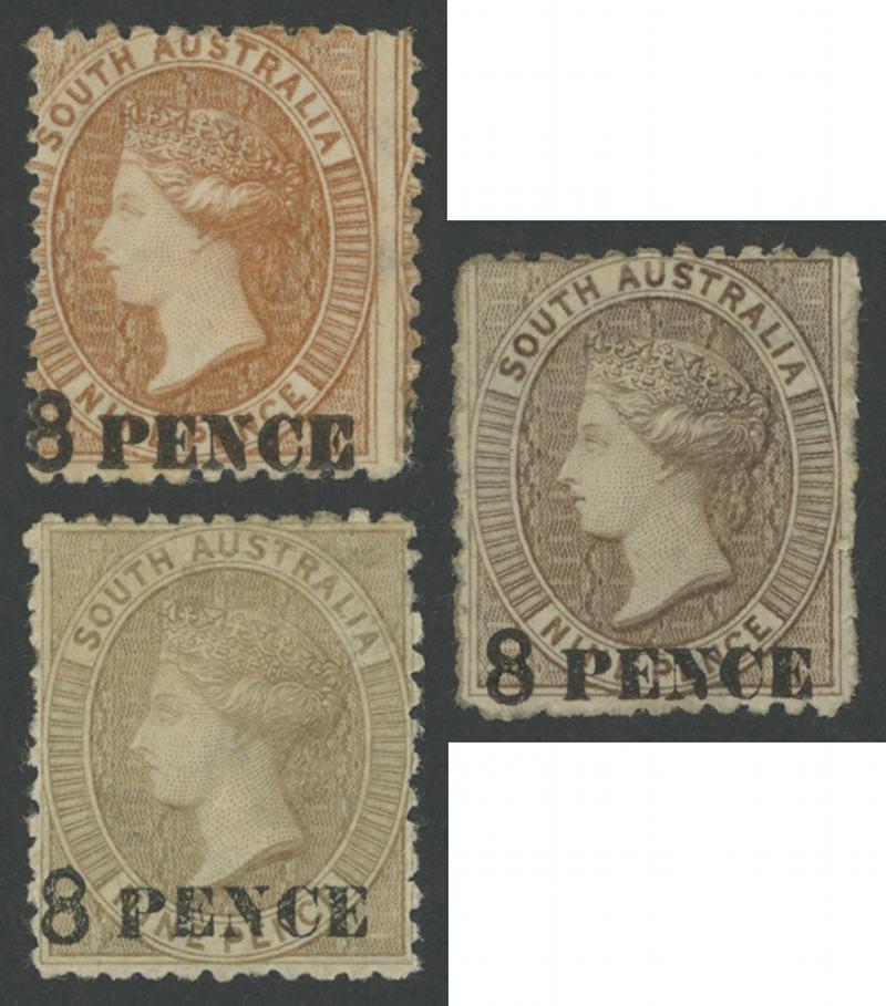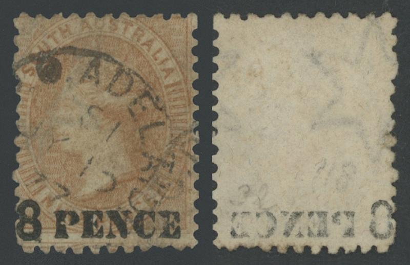 resulting in a 'dwarf' stamp with '8 PENCE' over 9d Missing, very fine framed GPO cds of 'SP18/78'. In effect, a 9d brown which, of course was never issued. Ex Gary Diffen - stated to be "the only example recorded" - sold for £144. (Image1) (Image2)