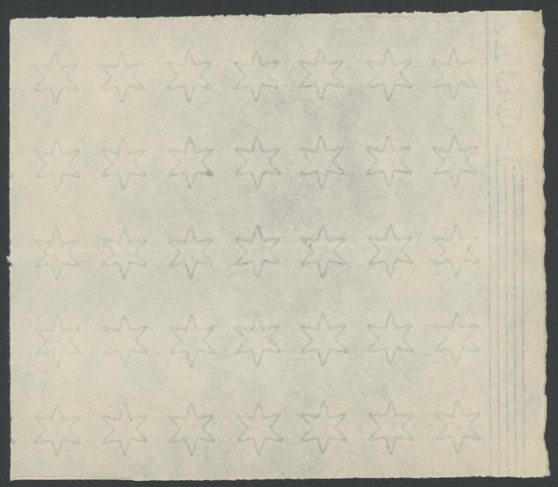 1876-1900 Perkins Bacon Broad Star Watermark Paper large piece (165x143mm) with 35 watermark bits (7x5) and marginal lines &