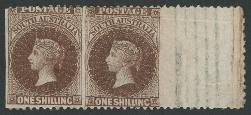 1876-1900 QV Perkins Bacon Broad Star Watermark Perf 11½-12½ 1/- chocolate horizontal pair from the right of the sheet Imperforate