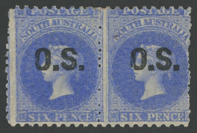 OVERPRINTED THICK 'OS': 1876-85 QV Perkins Bacon Broad Star Wmk Perf 10x11½-12½ 6d pale ultramarine horizontal pair, the first