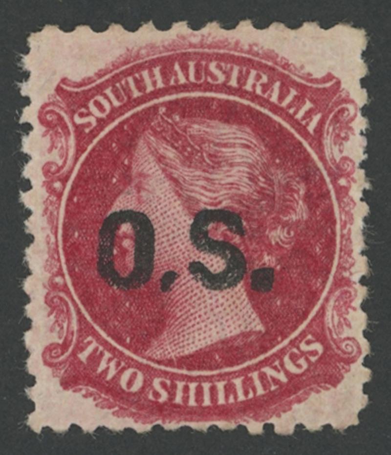 OVERPRINTED THICK 'OS': 1876-85 QV Perkins Bacon Broad Star Wmk Perf 10x11½-12½ 2/- deep carmine SG O21 with Irregular Compound