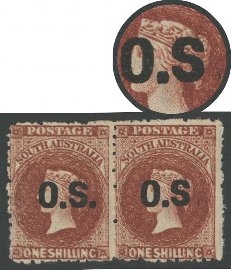 unit with No Stops in ‘O S ‘ SG O19e, a couple of short perfs, light squared-circle cancels of JA27/86, unpriced by Gibbons. Ex Don Pearce: sold for $838 (Sale 249 Lot 1450). Absent from Gary Diffen’s collection. (Image1) (Image2)