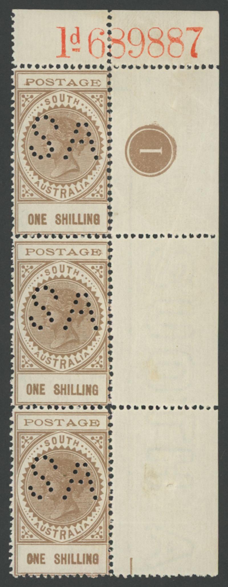 PUNCTURED 'SA': 1902-04 QV De La Rue Tall Stamps Thin 'POSTAGE' 1/- brown misperforated and with 'POSTAGE' and 'ONE SHILLING'