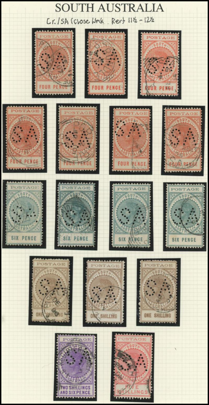 PUNCTURED 'SA': Mounted QV De La Rue Tall Stamps collection with Thin 'POSTAGE' used to 2/6d & 5/- x2 plus 3d block of 6 & 4d block