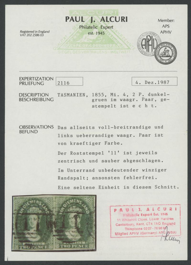 '11' cancels of Avoca, Cat £900+ for singles. BPA (1951) and Paul Alcuri (1987) Certificates. (Image1) (Image2)