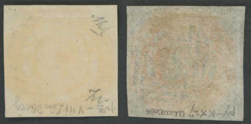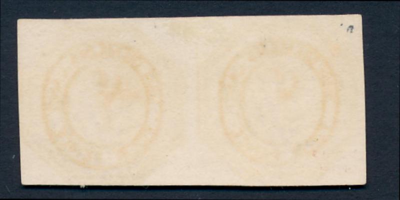 1853 QV Couriers Plate I Second State Blurred Lines 4d orange SG 8 (Scott 2b) horizontal pair, margins large to close at the base