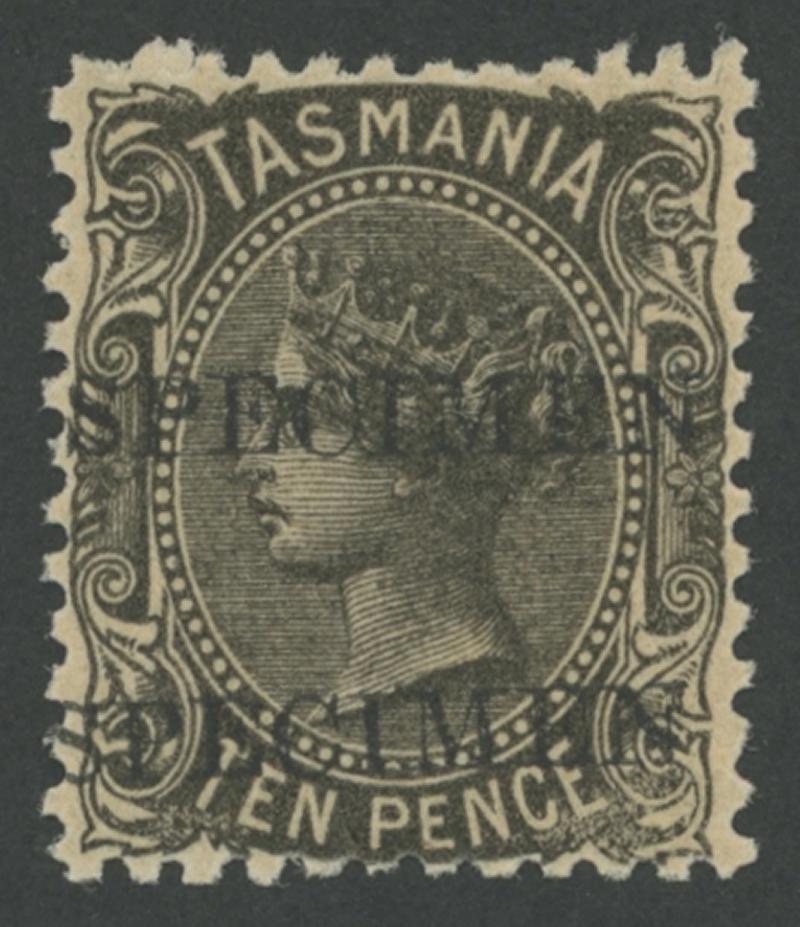 1870-71 QV De La Rue Sidefaces Hobart Printings Single-Lined Numeral Wmk Paper Perf 12 10d black SG 131 with 'SPECIMEN' Overprint