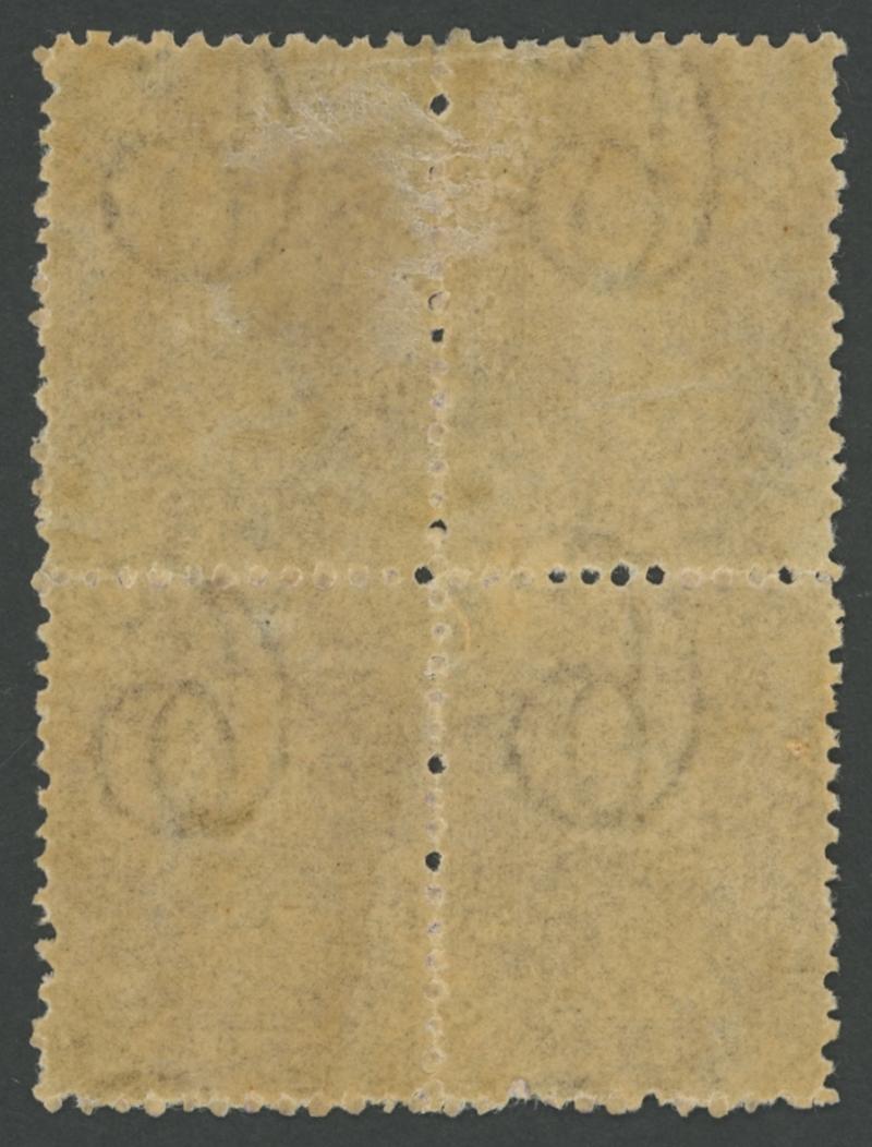 1871-91 QV Perkins Bacon Chalons Hobart Printings Double-Lined Numeral Wmk Perf 12 QV 6d reddish-purple SG 142 block of 4,