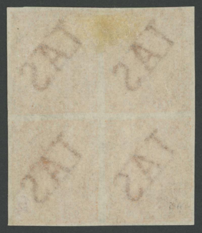 1891 QV Sidefaces Hobart Printings 'TAS'-without-Bars Wmk Perf 12 ½d orange Imperforate Block of 4 SG 172a, margins close to good,