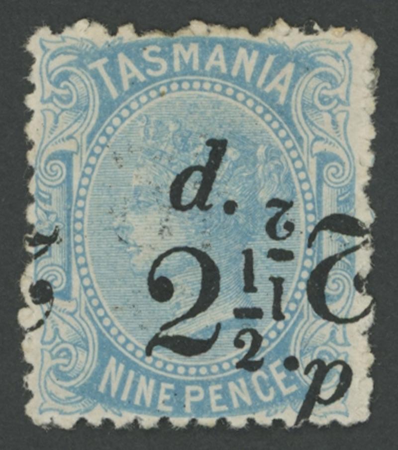 1891 Surcharge on QV Sidefaces Hobart Printing 'd./2½' on 9d pale blue with Double Surcharge One Inverted SG 168a, characteristic