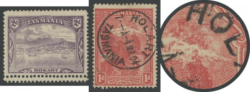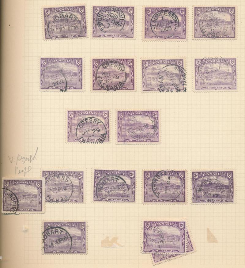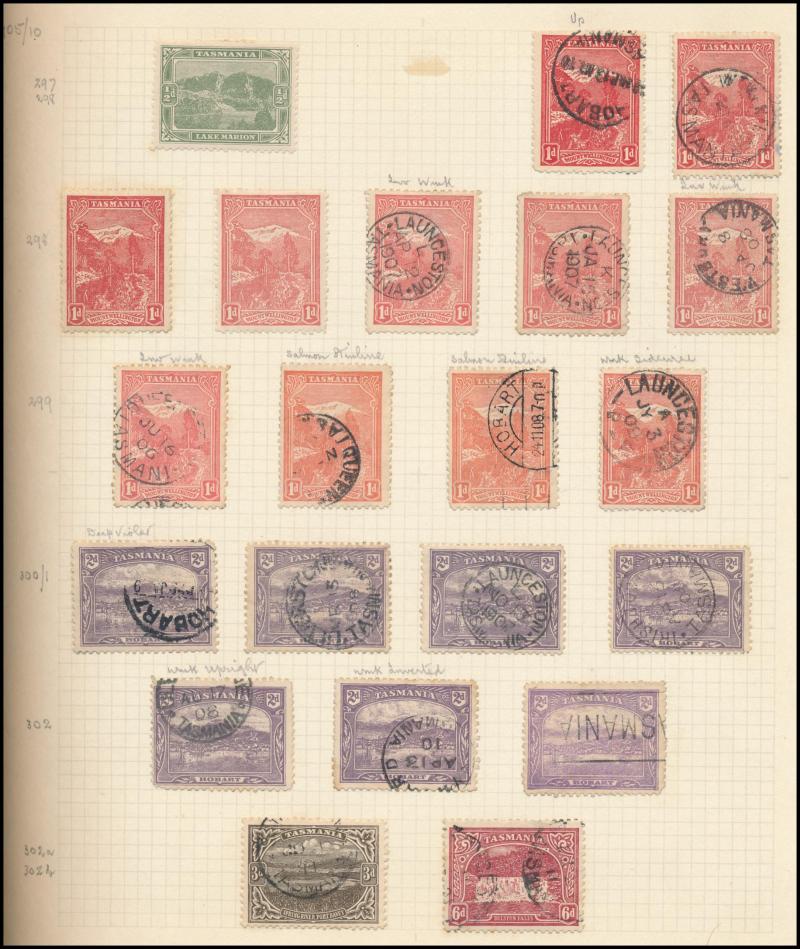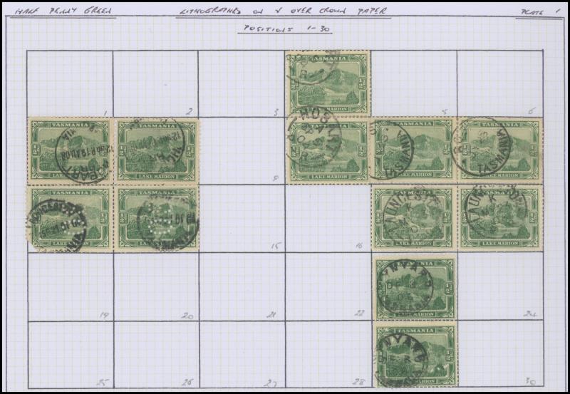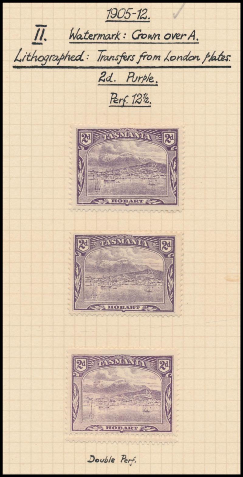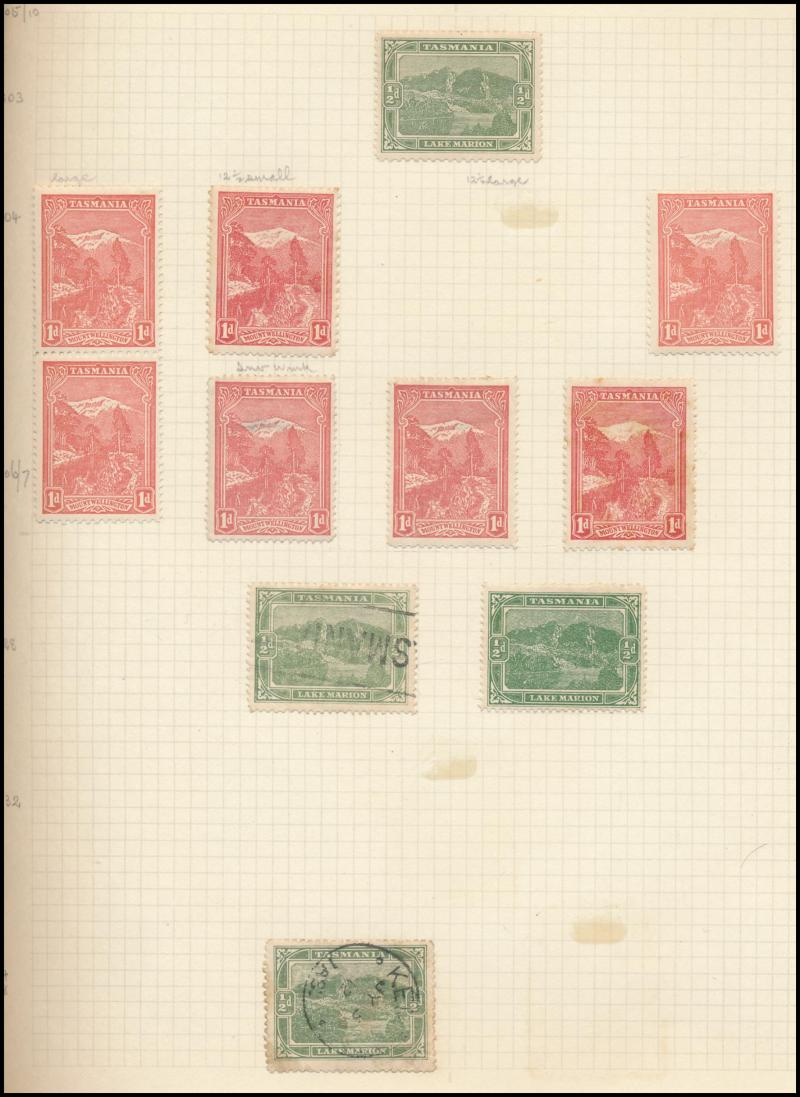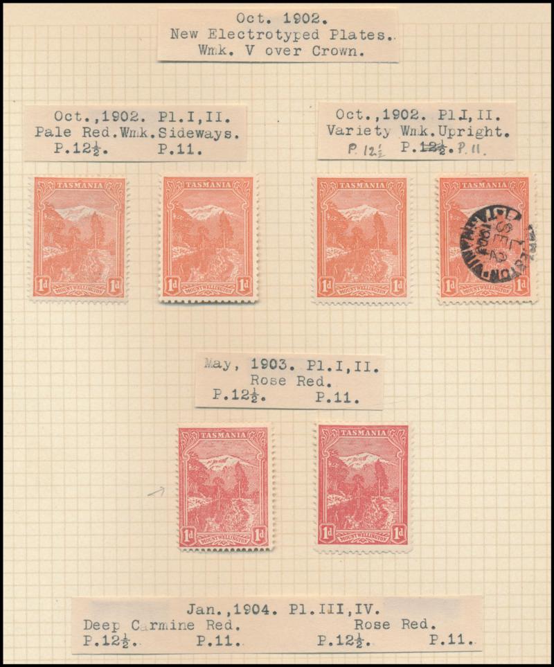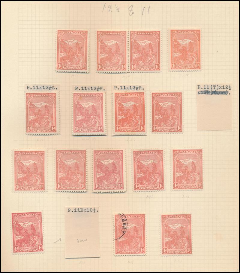 issued 1d 2d 2½d & 5d stamps plus eight different imperforate 5d colour trials with Lined Field in colours adopted for the ½d 6d 1/- 2/6d 5/- & 10/- plus for a proposed but unissued 3d & 4d, and an alternative for 2/6d as requested by the Tasmanian