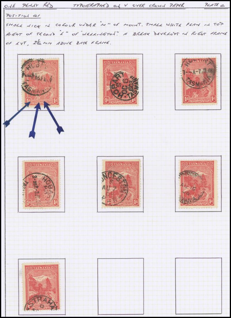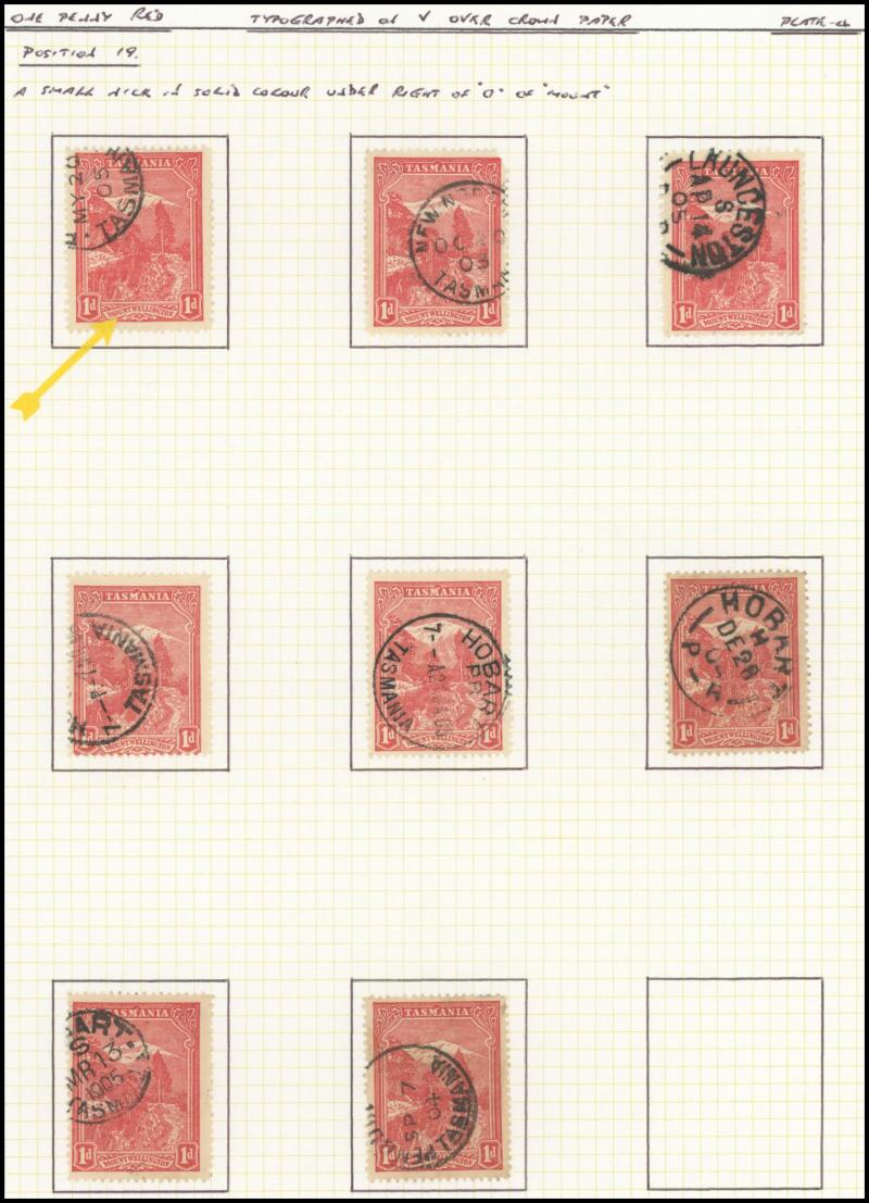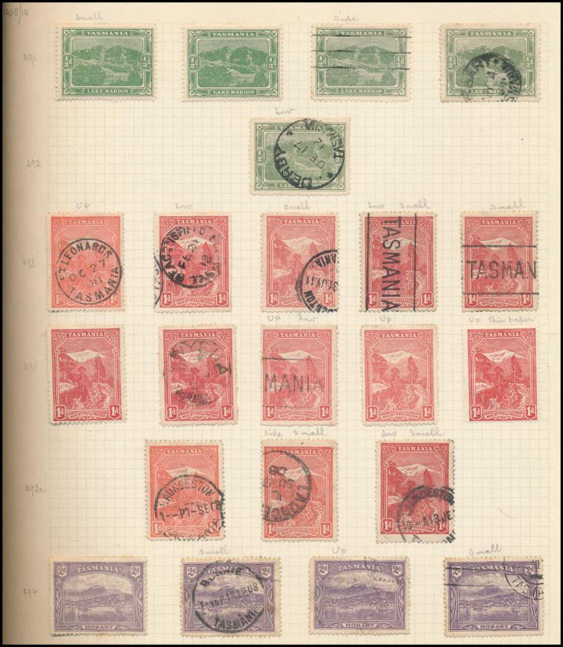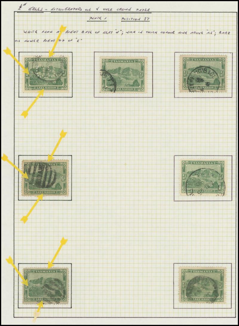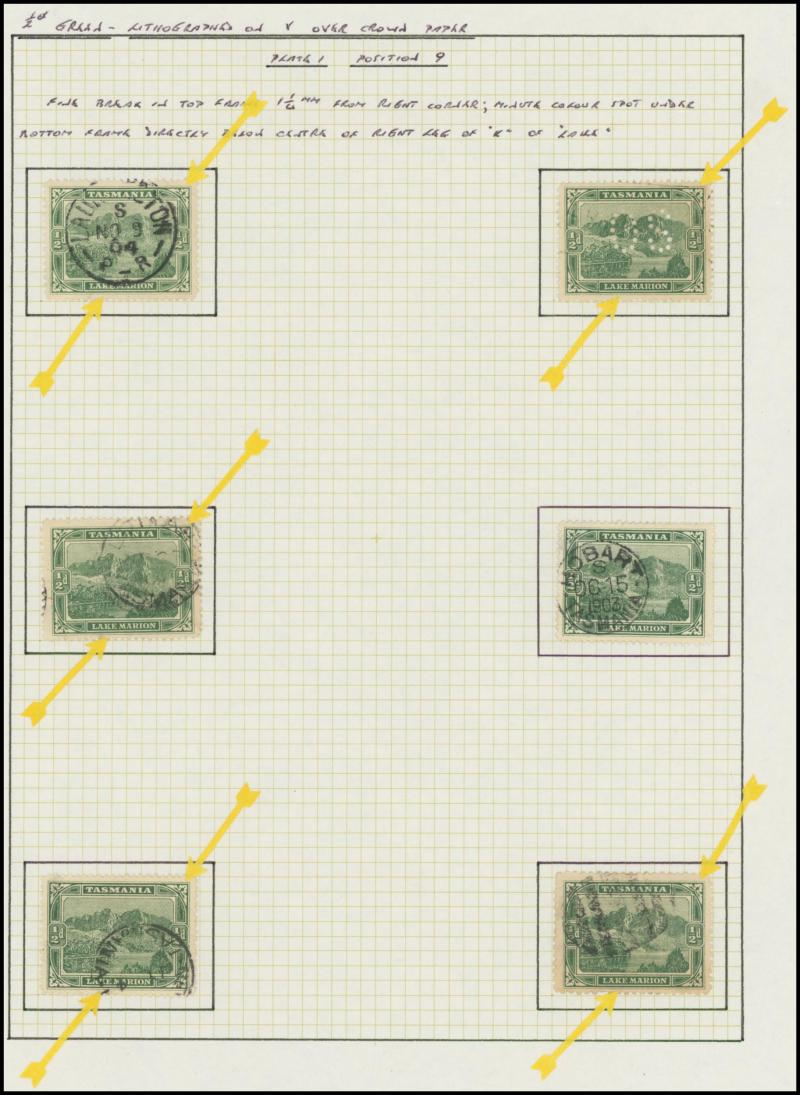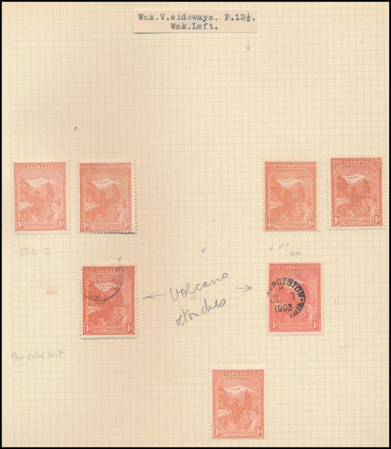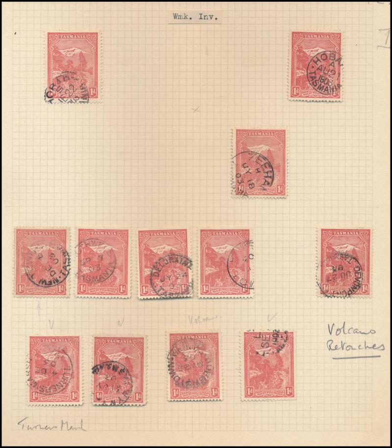 x8 or green x4 with the Value Tablet in various colours on Blank Field x4 or on Lined Field x8 each with 'TASMANIA' added by hand in Chinese white, proposed denominations in manuscript alongside the essays, light stain at left from where the original