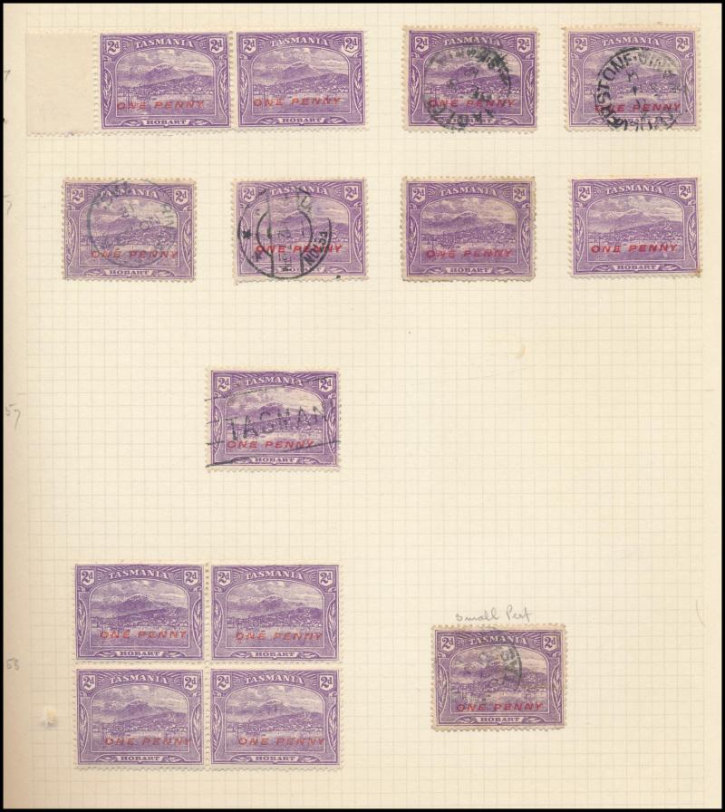 block of 4 */**, and many more, also some 3d & 6d values plus 'ONE PENNY' surcharges, various 'T' & 'OS' perfins, potential postmark interest, generally fine to very fine. Excellent research opportunity.
