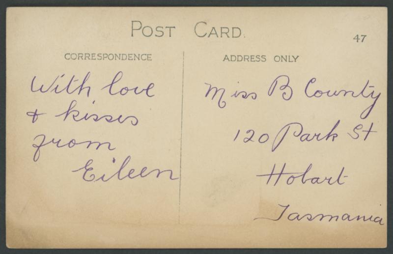 circa 1907 real photo PPC of a ladies netball team, to Hobart. Believed to be the only recorded example. Sold at our auction of 19.7.2003 for $710 (Sale 104 Lot 739). The divided back on the card confirms a post-1904 usage. (Image1) (Image2)