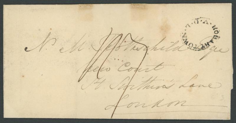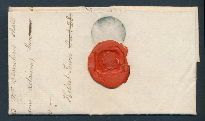 1828 (early) large-part outer to London with a very fine strike of the small oval 'HOBART TOWN/VDL' undated handstamp (Hardinge