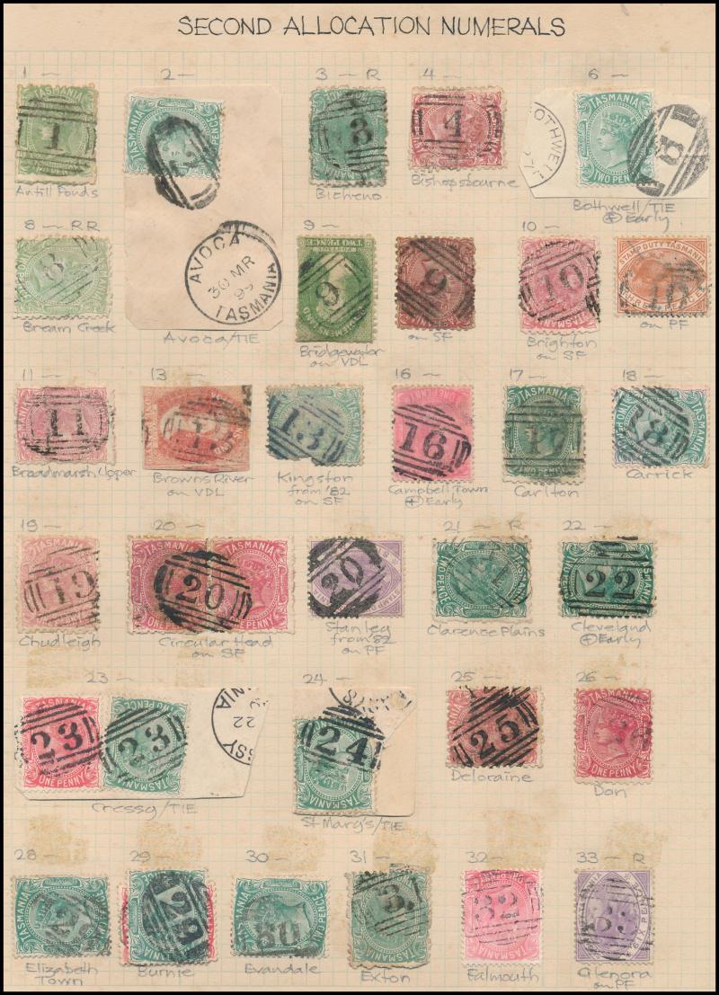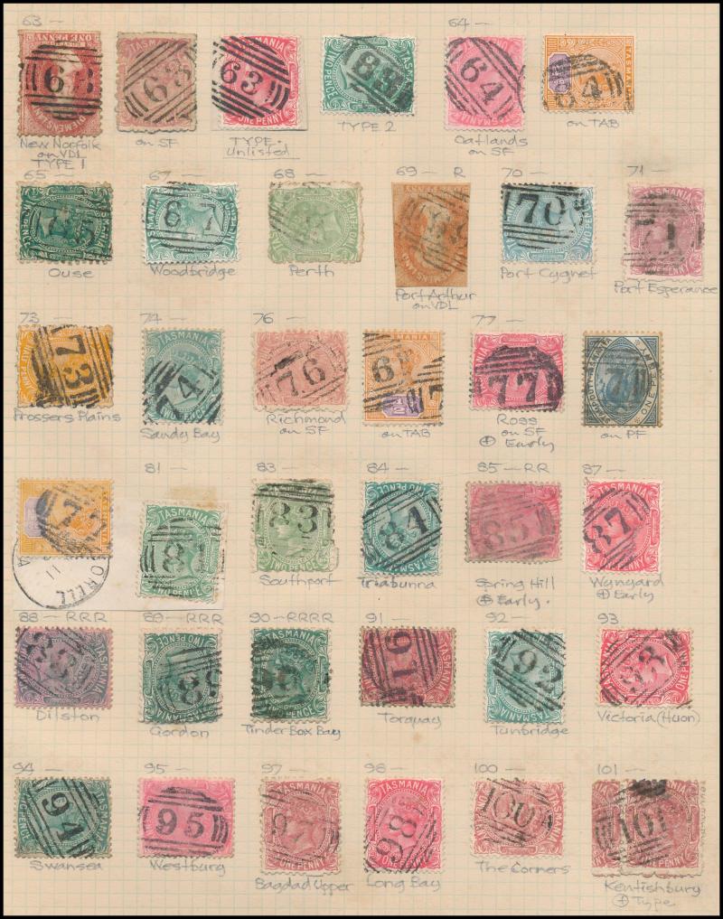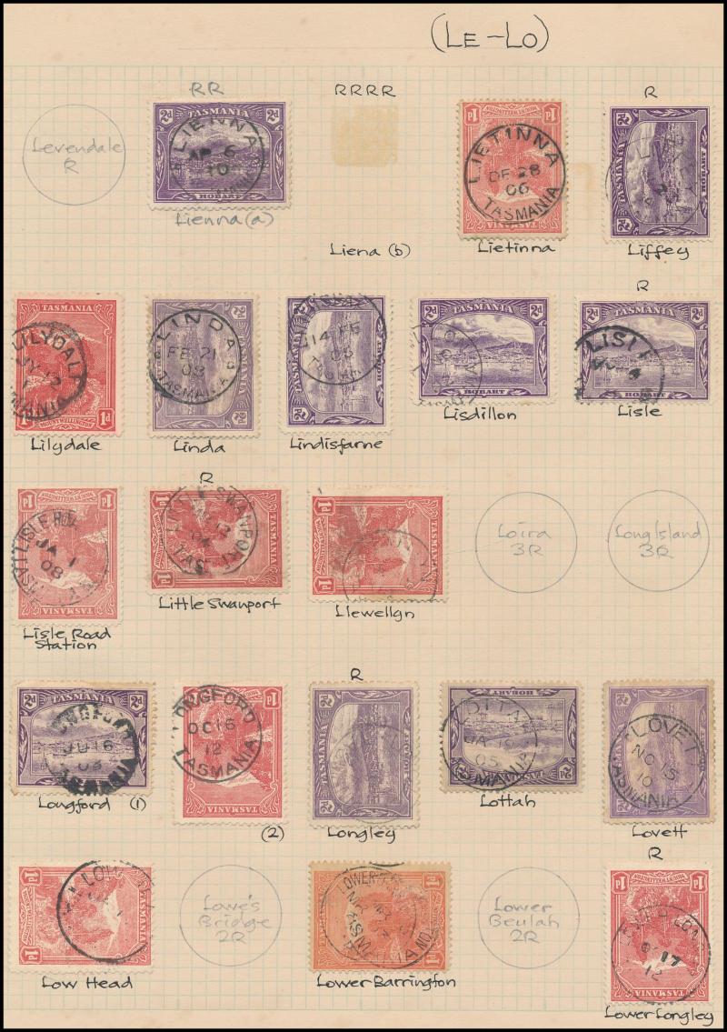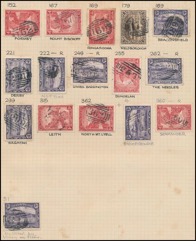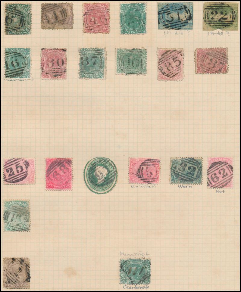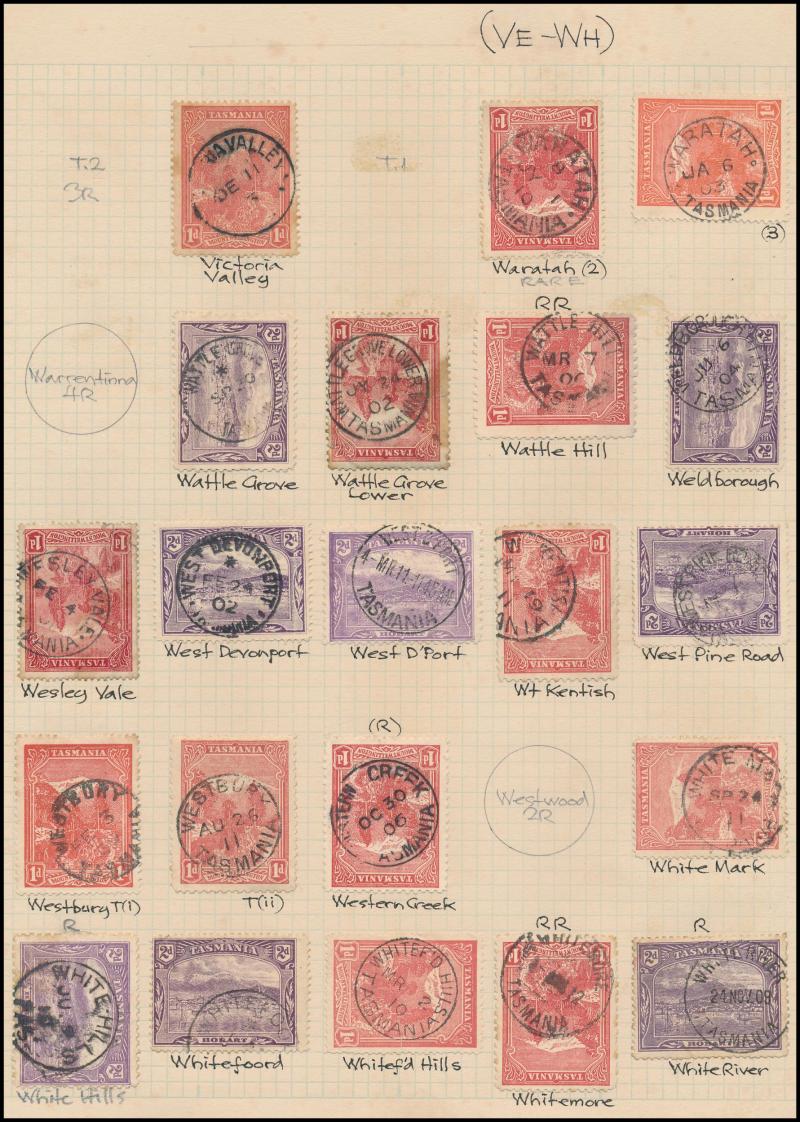 HILL', 'WHITEMORE', 'WILMOT LOWER', 'WOODLANDS', etc, and many very fine R-rated offices, higher values noted 'FLOWERDALE', '[FLO]WERDALE UPPER' & 'THIRLSTANE' each on 3d, 'CAPE BARREN ISLAND' & 'GOULDS COUNTRY' each on 4d, 'HAMILTON' on 5d, and