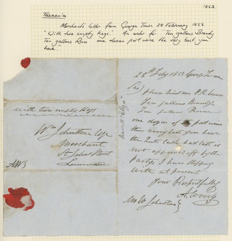 earliest known private letter from the Colony is one written by Matthew Bowden on 17.10.1805 also from Hobart Town to the same addressee, which is held by the National Library of Australia. (Image1) (Image2)