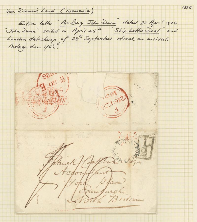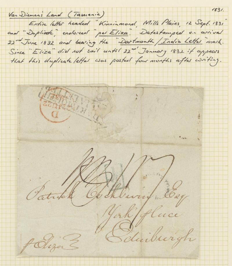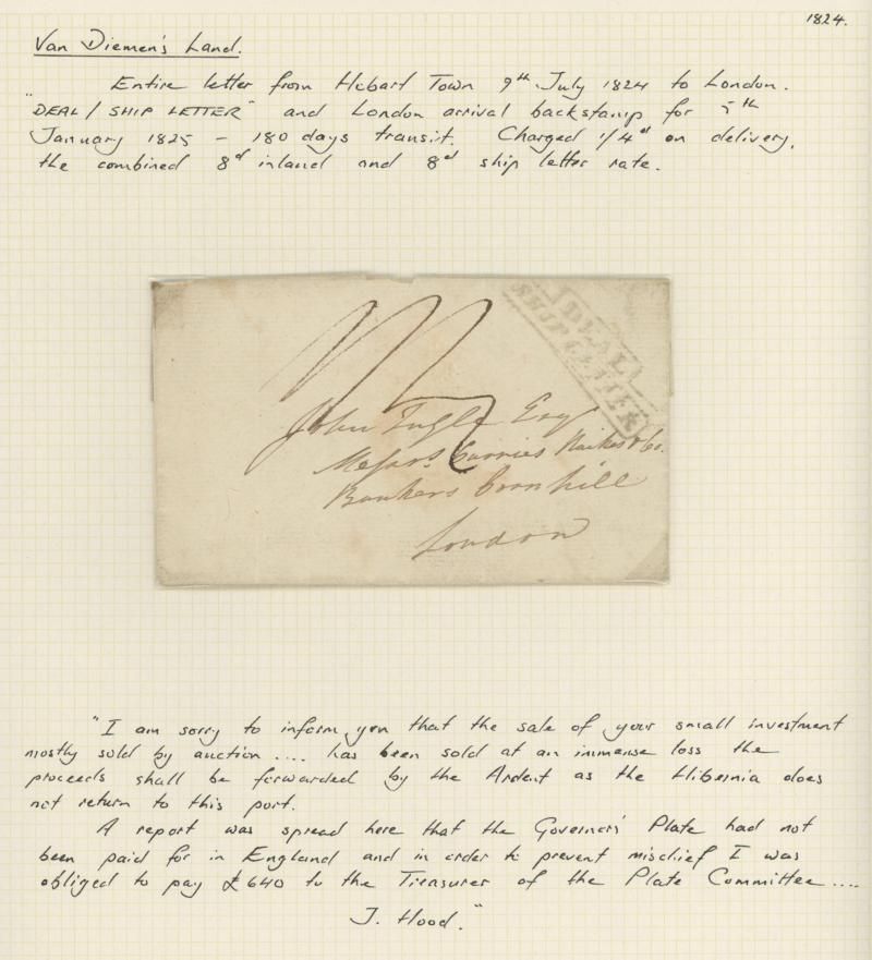 to the establishment of local postal services. Ex Dr Owen Ingles. This may be the earliest known letter from Van Diemen's Land in private hands.