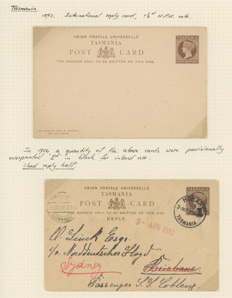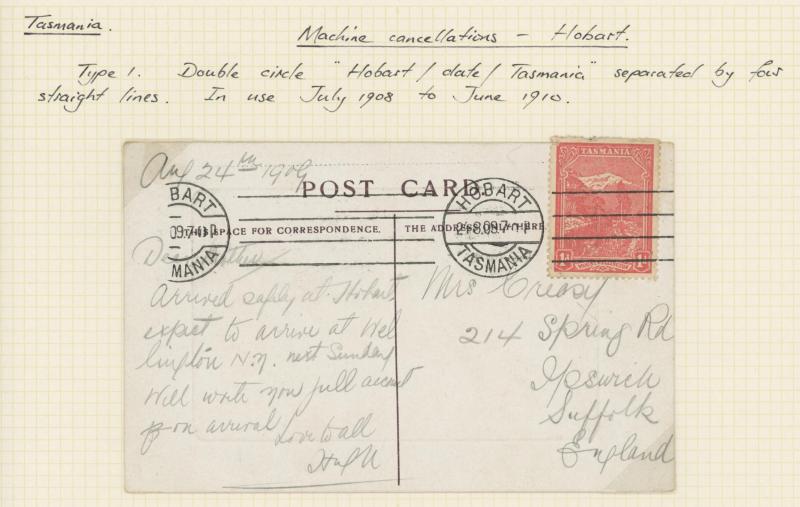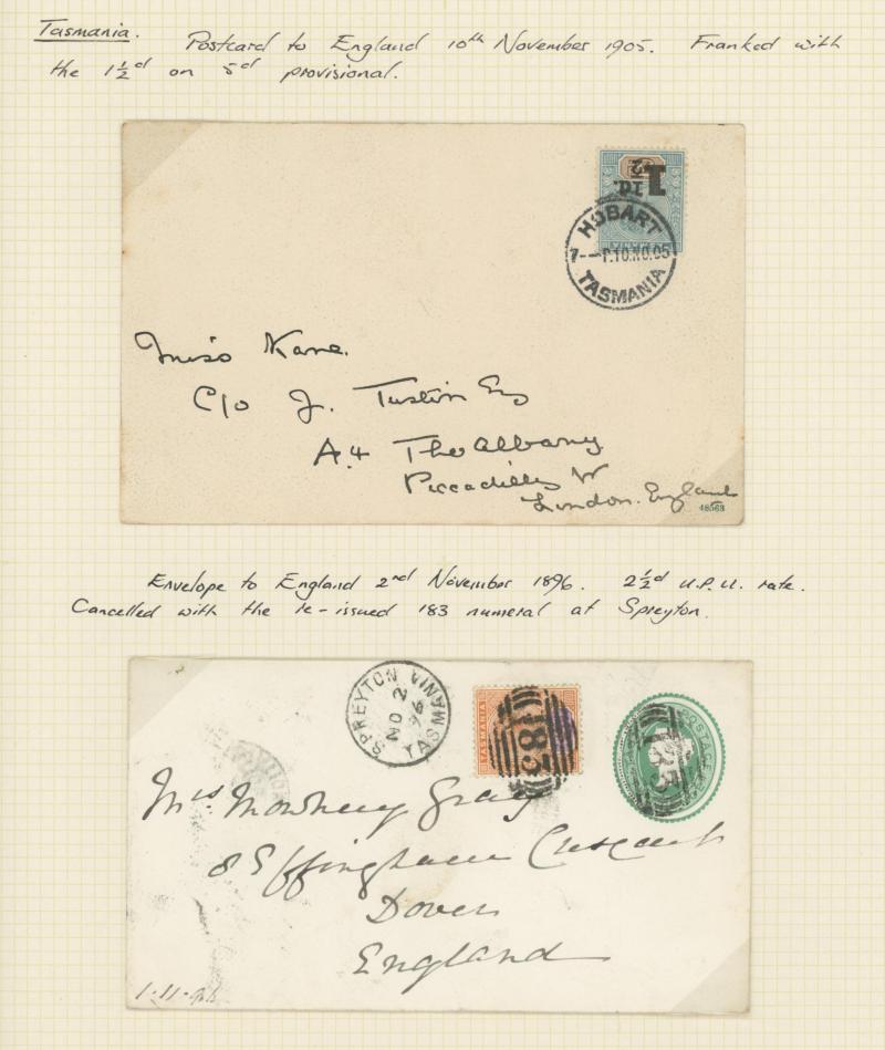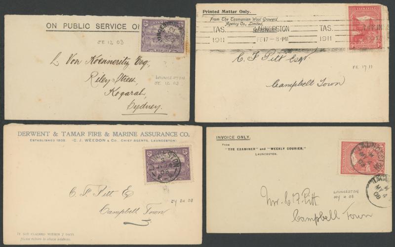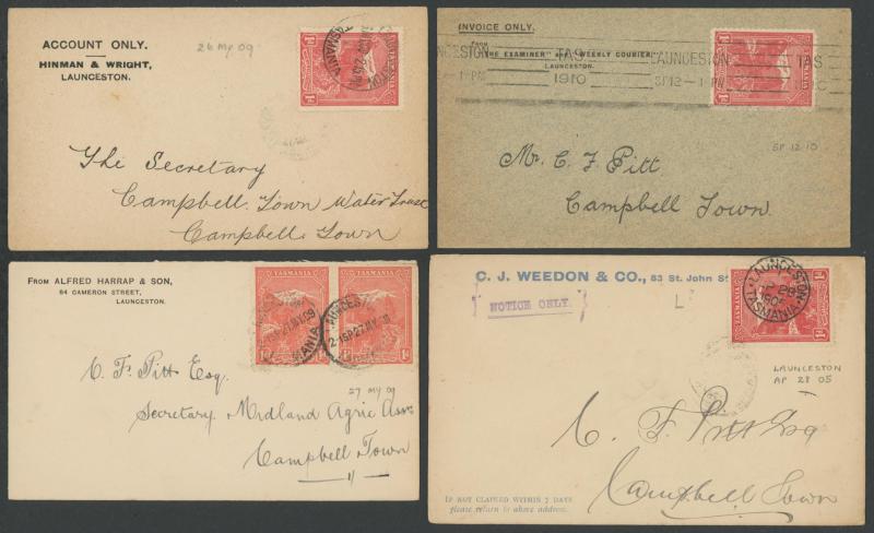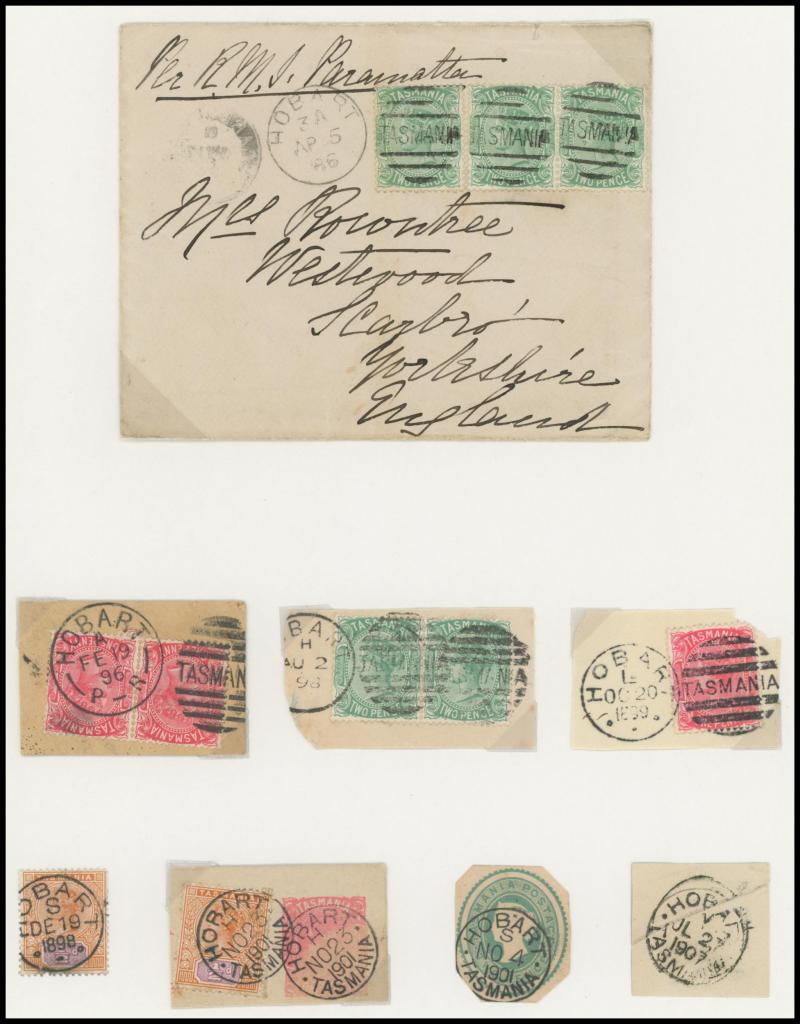 on arrival, and 1908 Government Printing Office wrapper with 'POSTAGE PAID/HOBART TAS' cds, condition a little variable but generally fine to very fine.