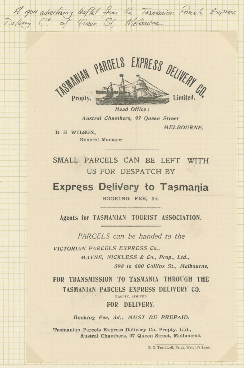 Assurance', 'Daily Telegraph', 'Examiner & Courier', 'CJ Weedon' (with printed promotion on the reverse), 'Alfred Harrap & Son', 'Hinman & Wright', 'Tasmanian Wool Growers' Agency', 'Tasmanian Agricultural & Pastoral Society', etc, and Union Bank of