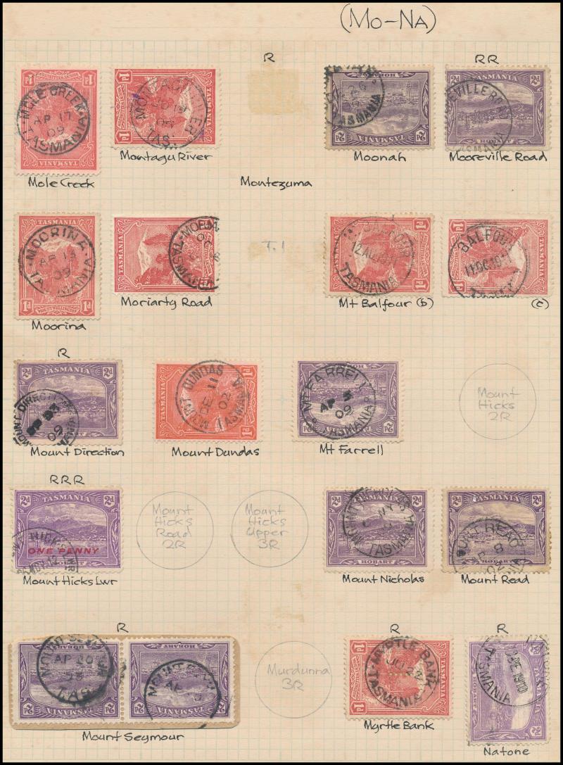 'MONTEZUMA', 'NATONE' , 'NUGENT' Type 2, 'PALOONA', 'PILLINGER', 'PIPER'S BROOK', 'QUAMBY BROOK', 'RISDON', 'ROSEBERY STATION', 'SELBOURNE', 'SHANNON', 'STIRLING', 'TEMMA', 'UPPER HUON', 'WOODLANDS', etc, also many very fine R-rated & other offices