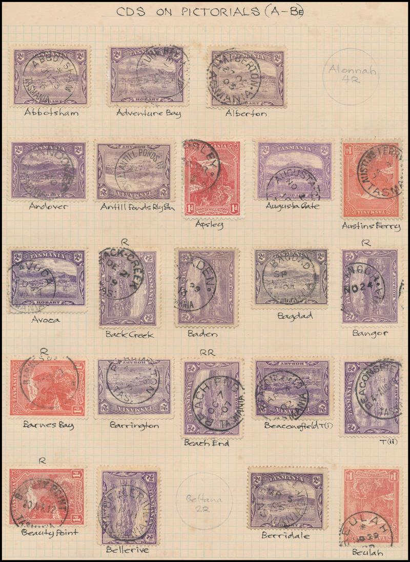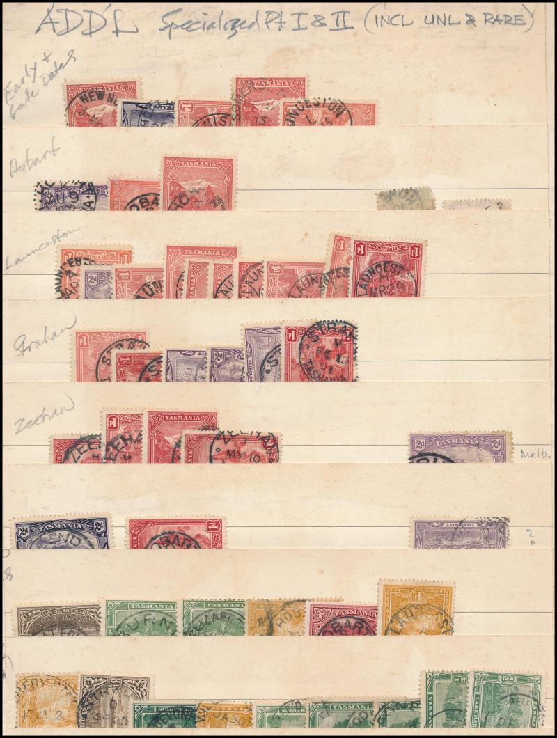 and lots of post-WWII items, plus a batch of 400+ "all-different" cds cancels and an extensive range of Launceston cancels on Pictorials sorted into envelopes by type filling a shoebox, the quality of the strikes rather variable but still plenty of