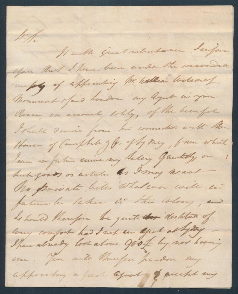 in 1810 at the age of around 35. The letter talks of appointing an agent as "... no private bills whatever will be taken in future in this Colony, and I should therefore be quite destitute ... I have already lost above £900 by not having one". The