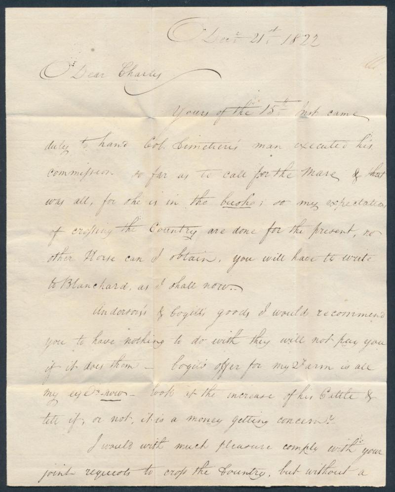 circular handstamp (Hardinge Type Primitive (i); rated RRRRR), the orginal letter from the addressee's brother with a lengthy note added in another hand regarding a lost horse for which a reward is offered that extends partly onto the face, minor