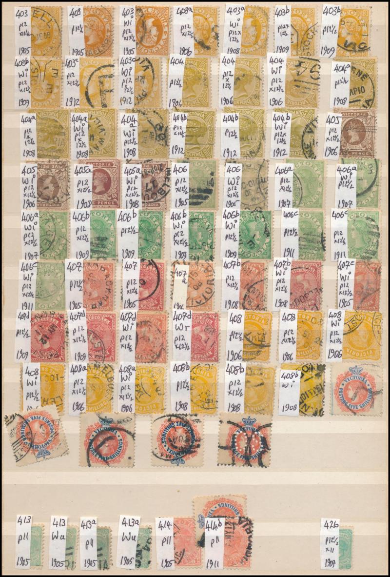 Non-Conforming Numeral Watermarks, 3d lilac x2 and ½d on 1d x7 including a pair, some later mint including 1/6d blue (tiny defects), 2/- apple-green x11, 1901 No 'POSTAGE' set to 5/-, 'POSTAGE' duplicated range to 6d x13, 9d x5 & 1/- x7 etc,