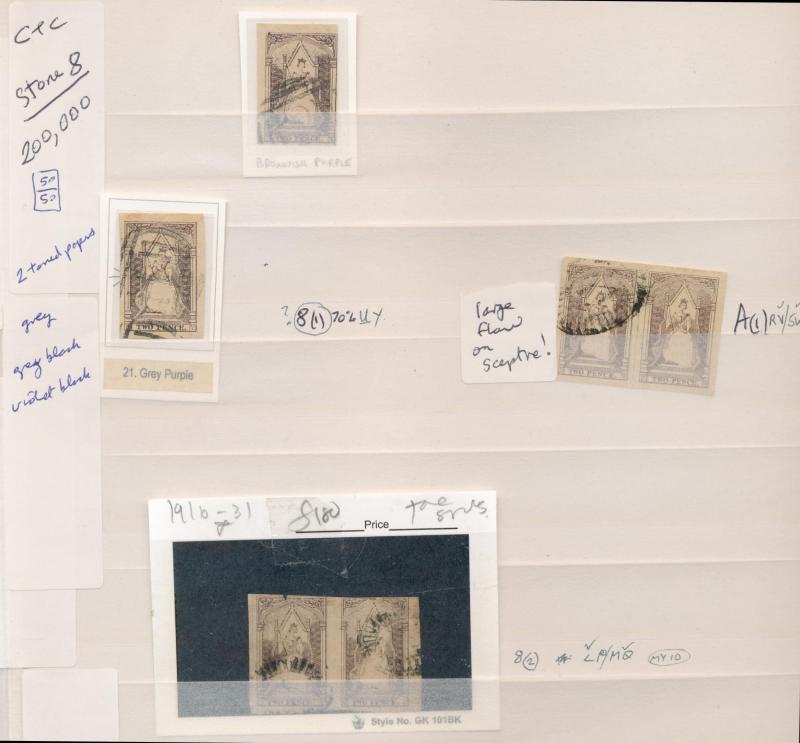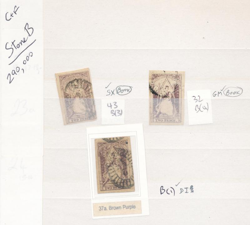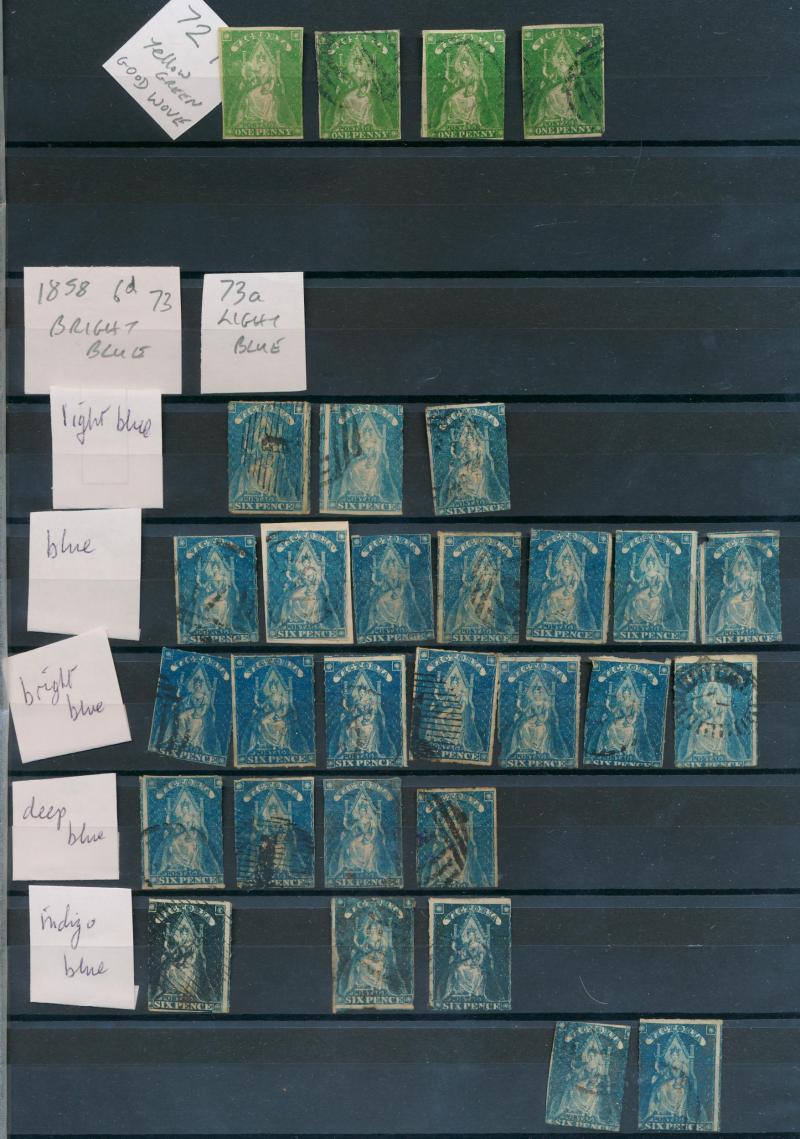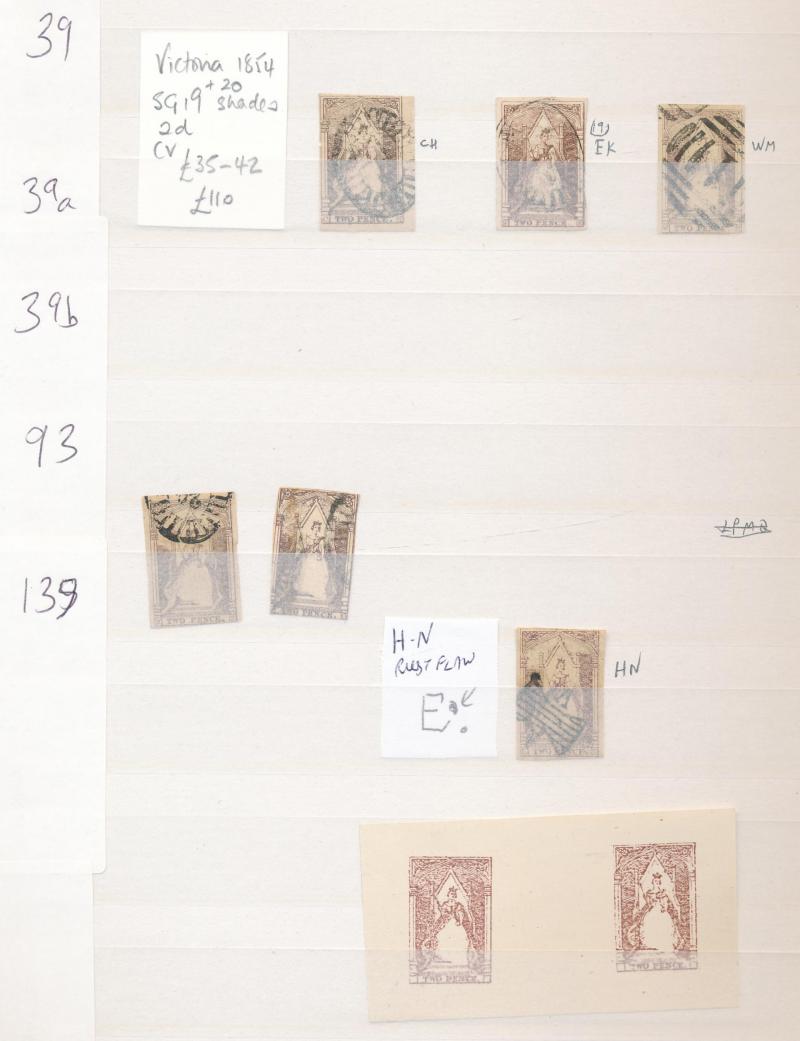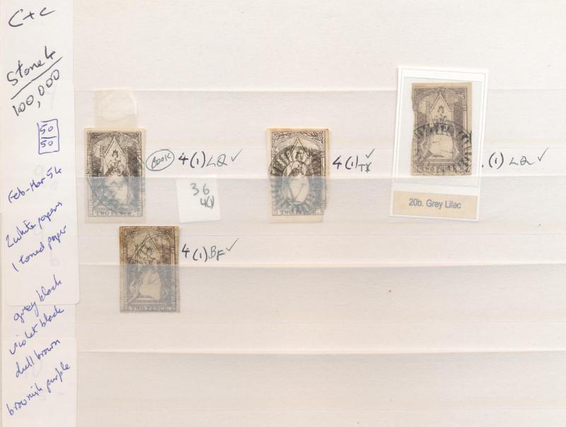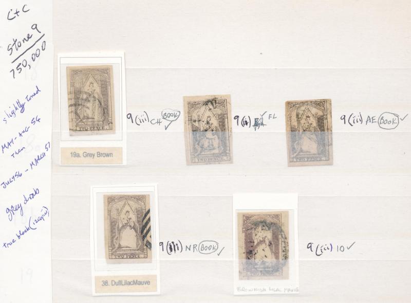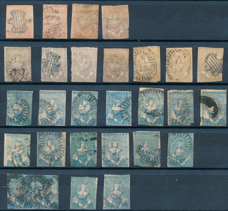 x32 & 3d x43 including two pairs & a defective strip of 4; Rouletted 3d x3; Perf 12 3d x4; and a page of forgeries & reprints plus a Jeffryes 3d sheet of 50 (10x5); condition very mixed but with many attractive stamps. We have not confirmed any of