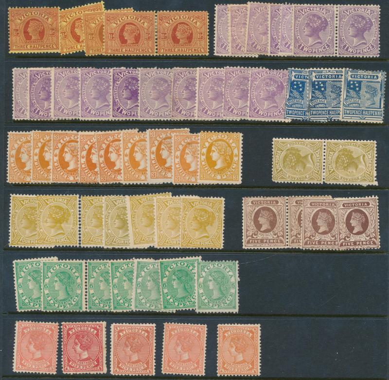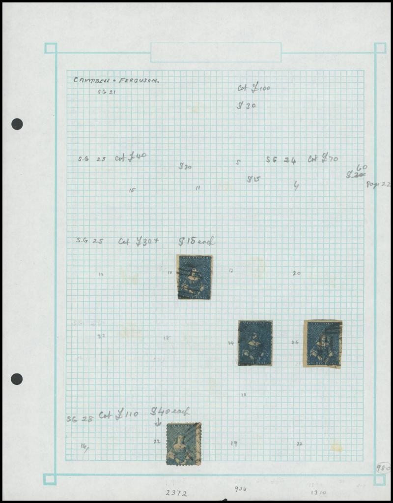 two pairs and 3d x33 including a full reconstruction of 12 positions with strips of 3 & 4, White Veils partial reconstruction of 9/12 and another strip of 4; Campbell & Co 1d x7 including a pair & 3d x7 including a pair; and Campbell & Fergusson 1d