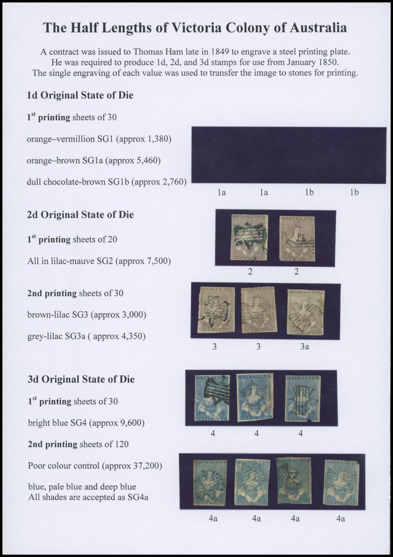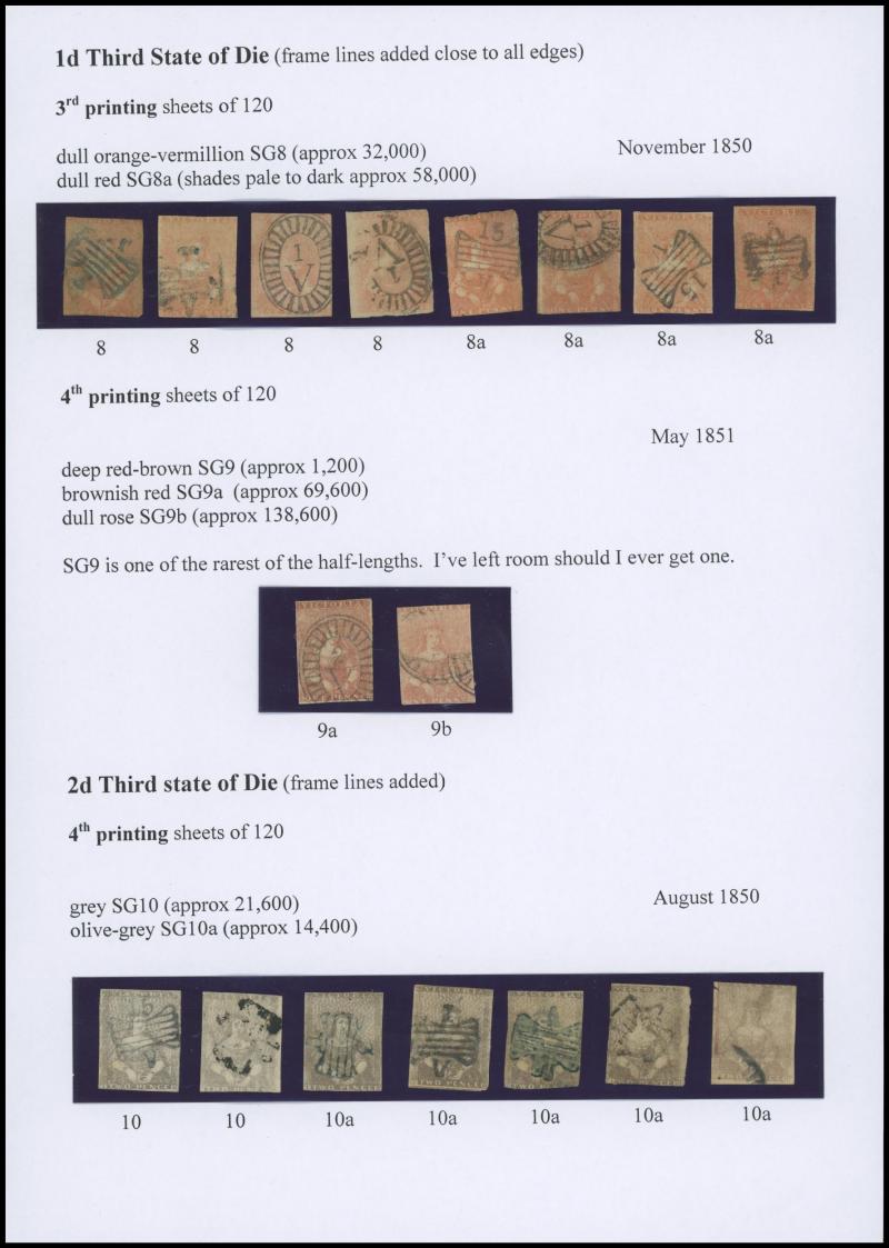 1850-57 QV Half-Lengths neatly presented annotated collection stated to include Thomas Ham Original State of the Dies 1d SG 1a x2
