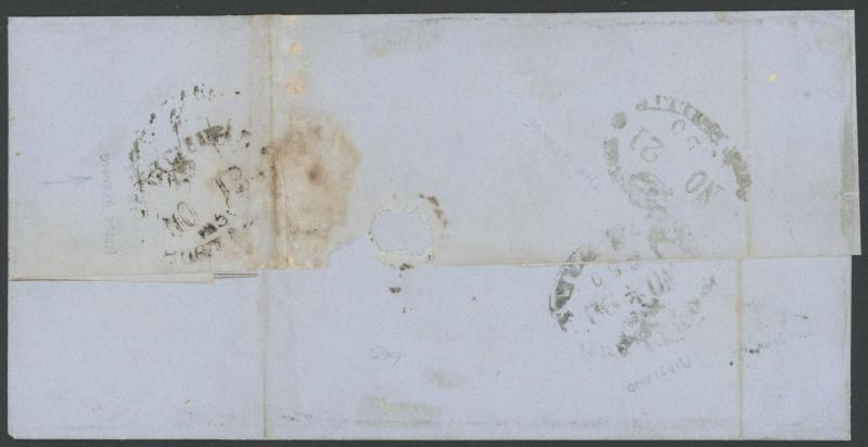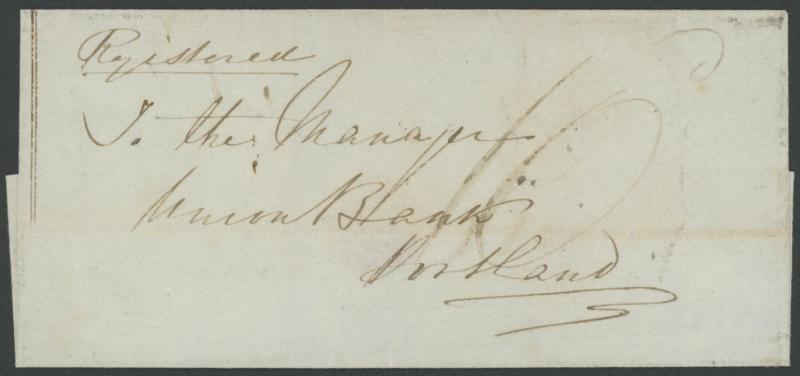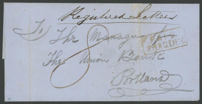 1849 (Nov 18) outer endorsed "Registered Letters" to a bank in Portland with a largely very fine strike of the boxed 'PAID/UPPER