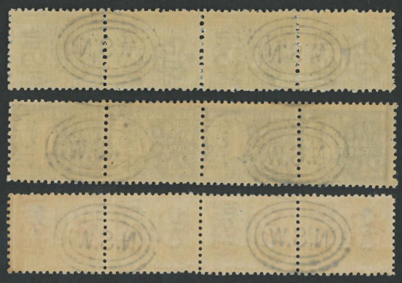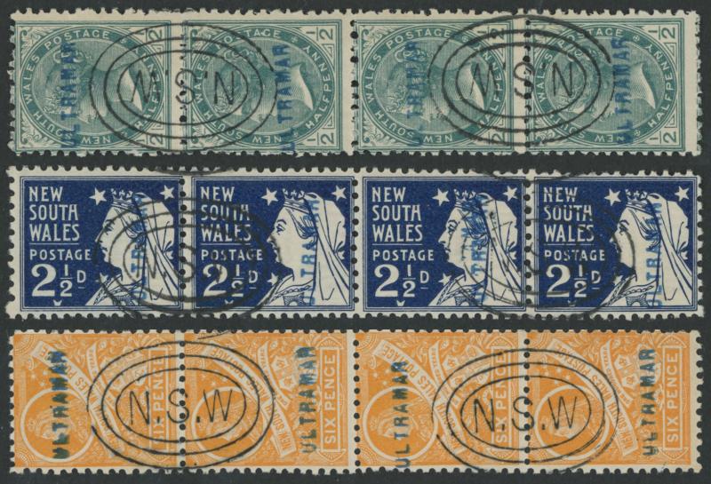 'NSW'-in-concentric-ovals also with 'ULTRAMAR' handstamp in blue (doubled on one 2½d unit), full unmounted gum. Superb. Ex Portuguese Colonies Archives from a UPU distribution.