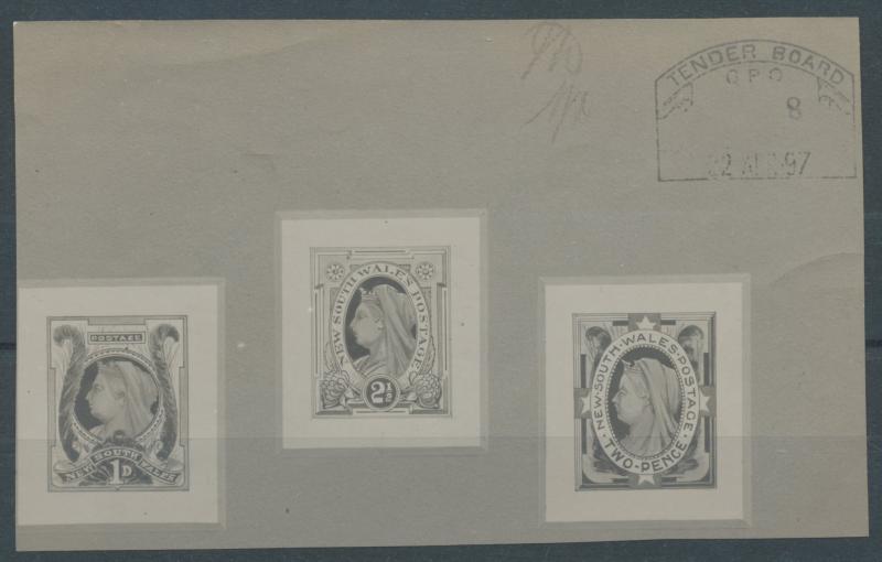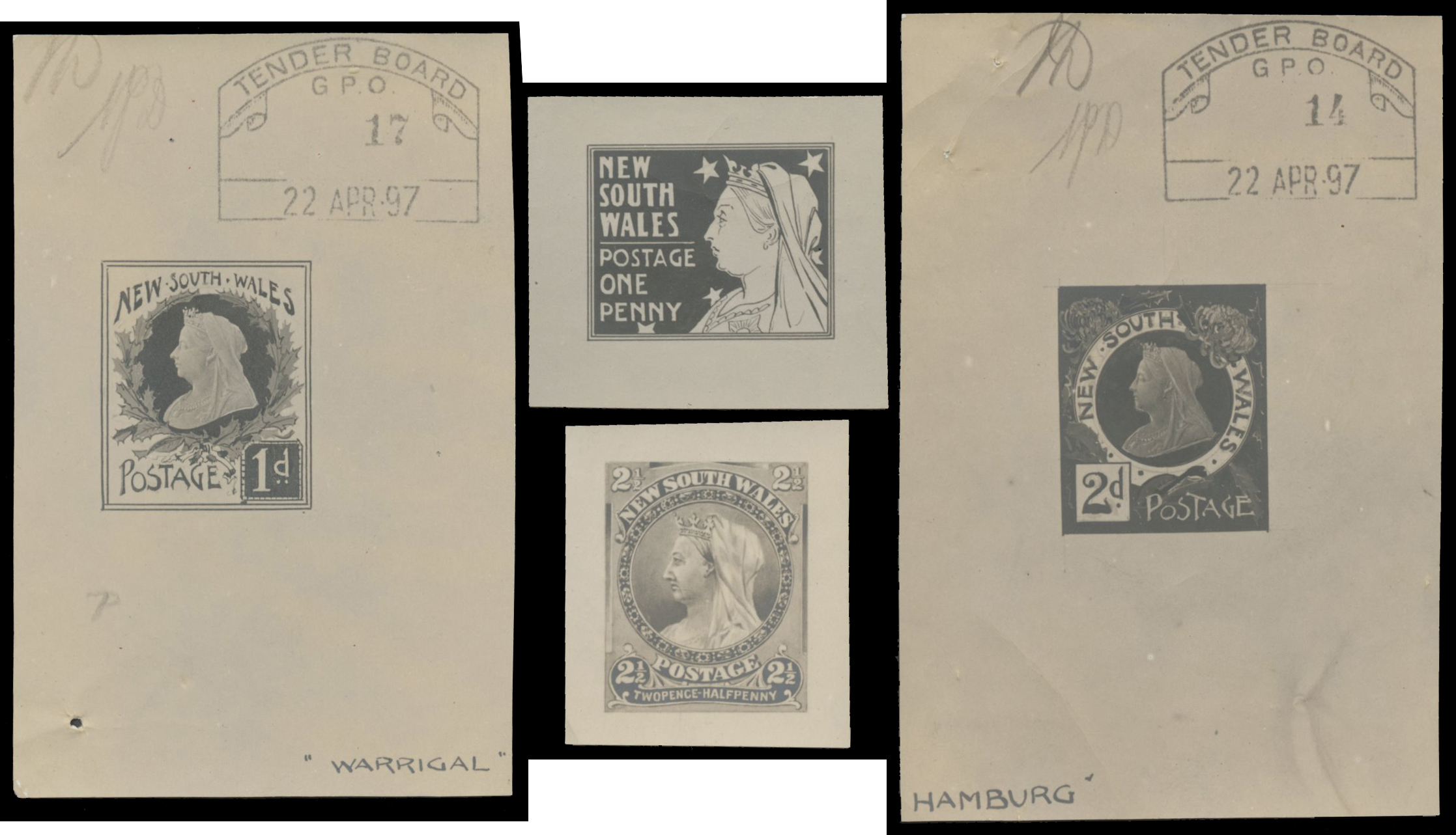handstamp. Very attractive & desirable: includes a 1d design that was adopted for the issued 2½d stamp. A remarkable little archive. Ex John Bell (Goulburn): sold at our auction of 8.5.2013 for $990 (Sale 181 Lot 1137).