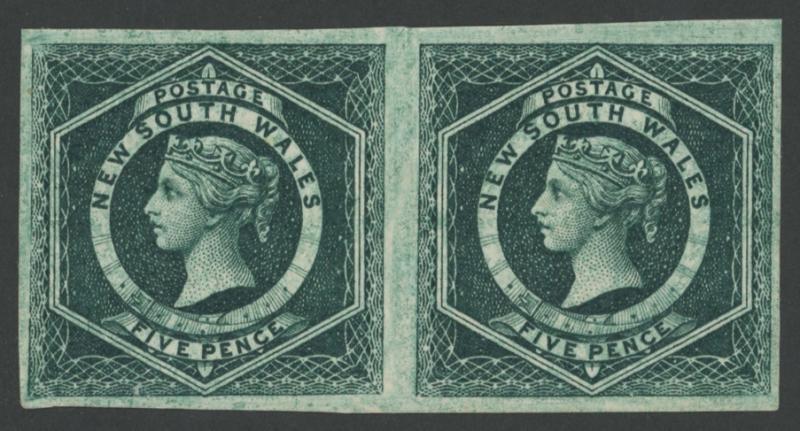 1903-08 QV Diadems Crown/NSW Watermark '65' 5d dark blue-green Imperforate horizontal pair ACSC N33b (SG 329d), margins good to