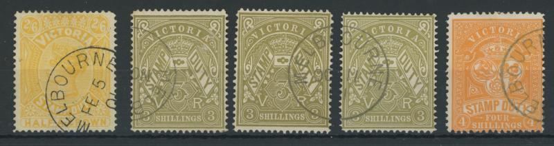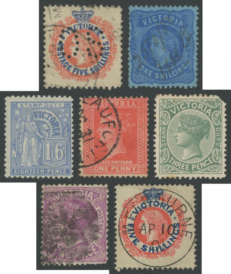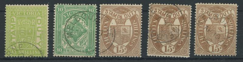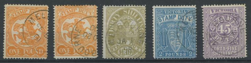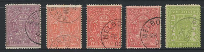 1884-96 Large Stamp Duty Validated for Postage selection comprising 2/6d, 3/- drab x3, 4/-, 5/- mauve (rare), 5/- rosine x3, 6/-