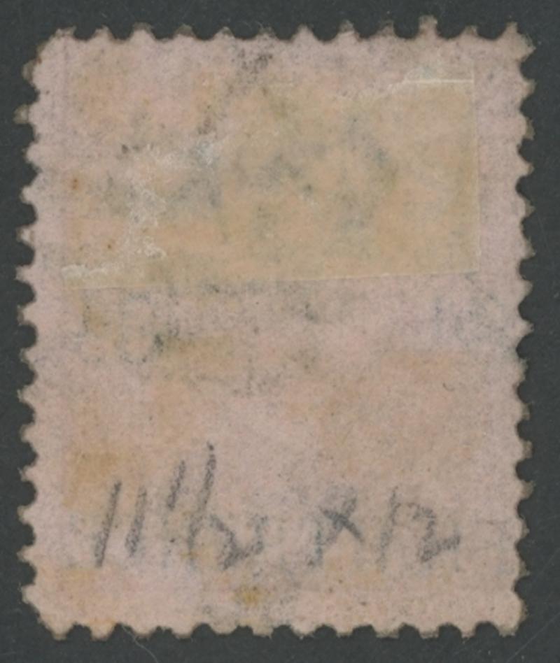 line machines gauging 12¼-12½ for the large format stamps" (all of which Gibbons list as Perf 12½). However, the paper on which this stamp is printed did not arrive in Melbourne until July 1882, and the horizontal rows here are Perf 13 exactly. (Image1) (Image2)
