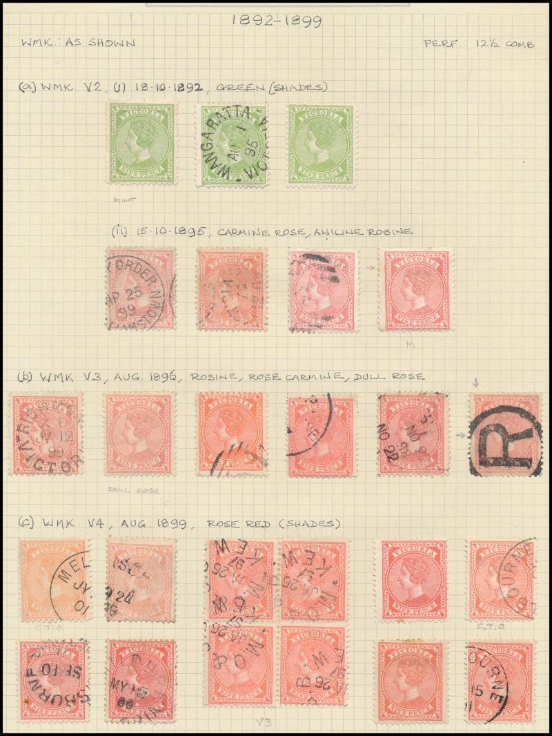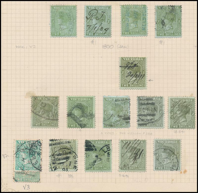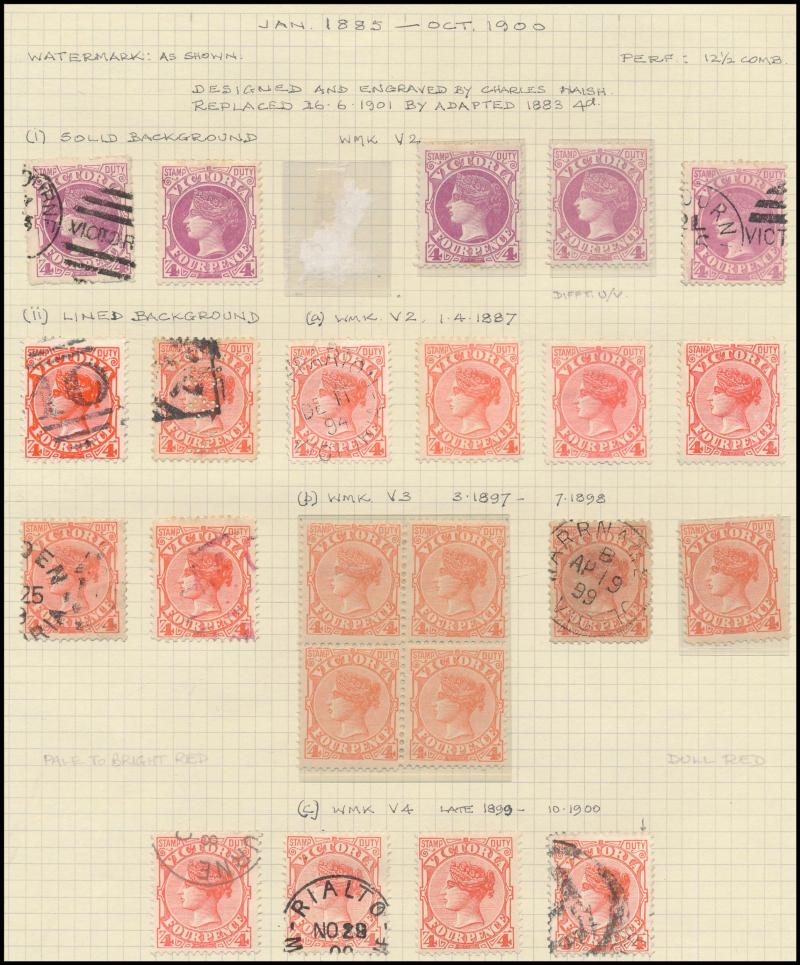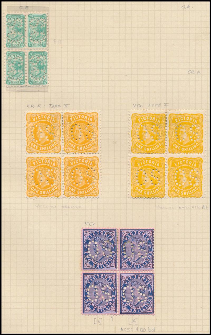 blocks of 4 to 2/-, etc, also a modest collection of Melbourne datestamps. Ex John Boykett.