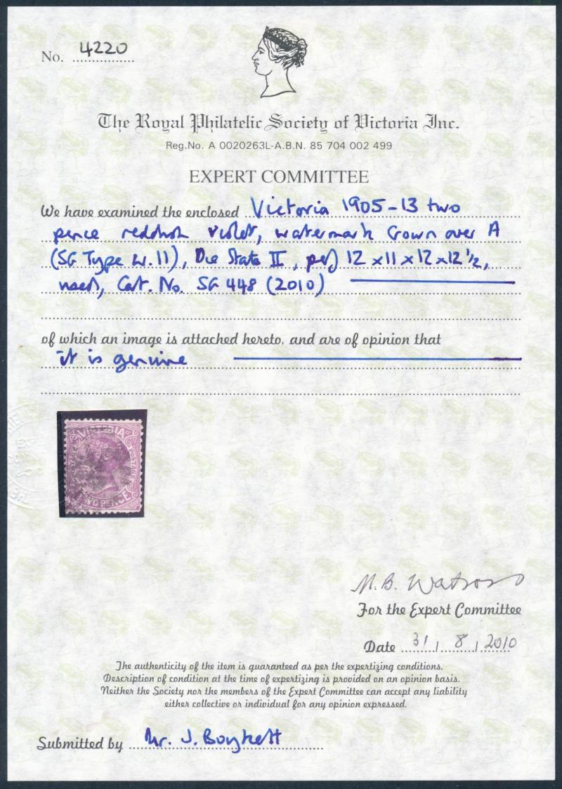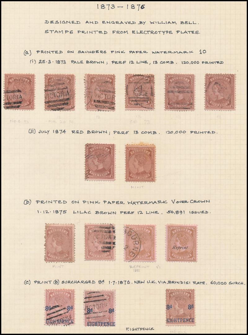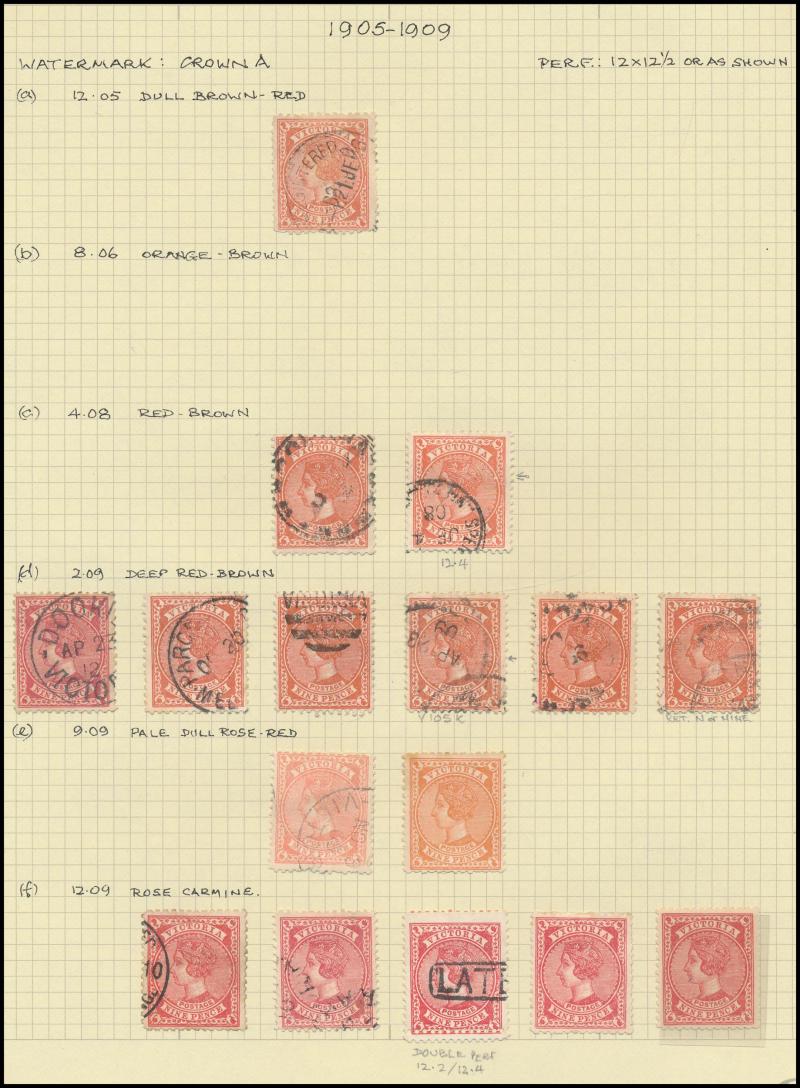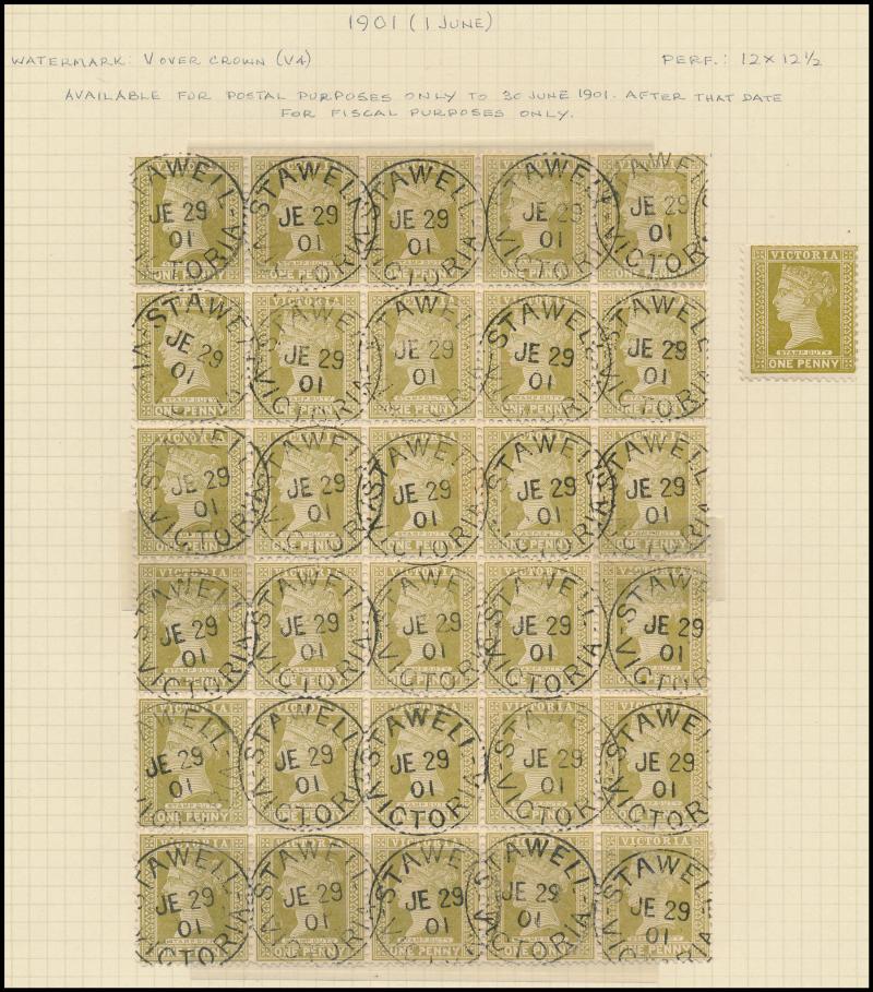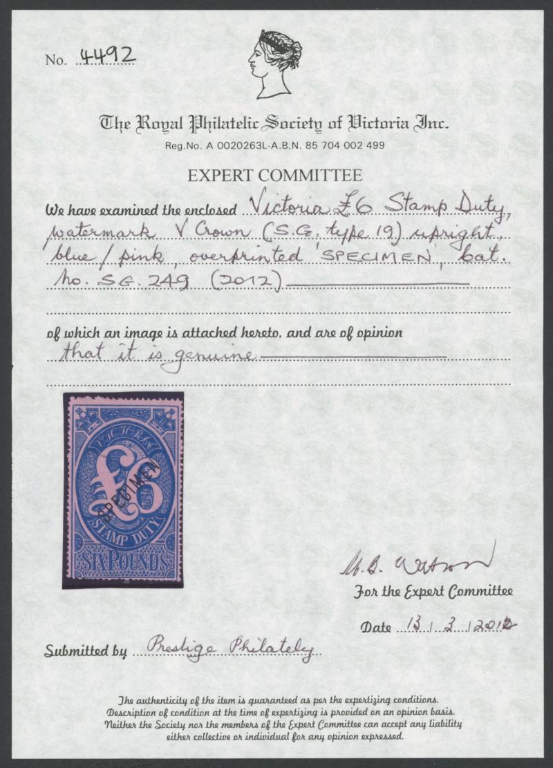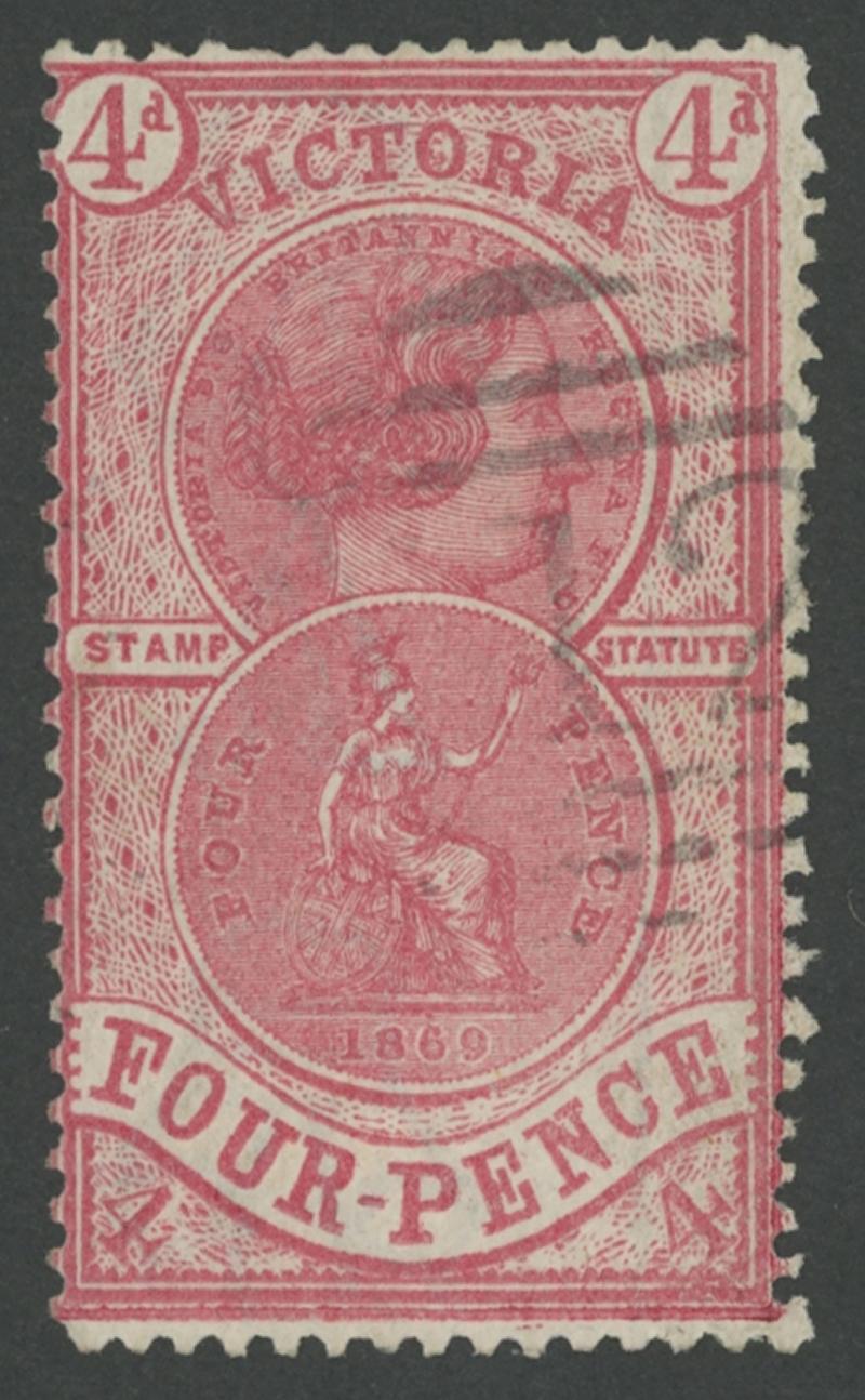 the design through 'VICTORIA' at top. This is the stamp illustrated by Geoff Kellow at page 202, where he states it to be the only recorded example. The only other stamp of which we are aware - Irregular Compound Perfs 12x12x12x12½; also Cat £750